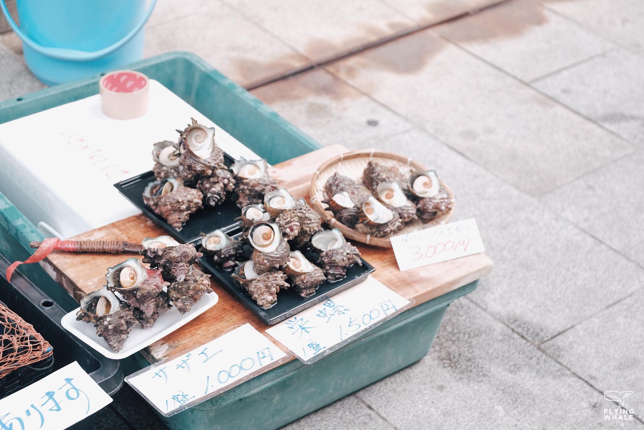ตลาดเช้าที่ใหญ่ติดอันดับ 1 ใน 3 ของญี่ปุ่นที่เป็นแหล่งจับจ่ายในตอนเช้าของย่านนี้ ร้านค้าต่างๆในตลาดจะมีแต่ของสดๆที่เพิ่งขนจากเรือมาวางขายกันเเลย แถมเราสามารถที่จะซื้อและนำมากินที่ร้านให้เค้าย่างได้เลย พิเศษไปกว่านั้นคือมีร้านข้าวเกรียบปลาหมึกยักษ์ร้านดังที่ไม่ว่าใครมาที่ตลาดนี้จะต้องซื้อกินกันทุกคน แถมยังมีภาษาไทยกำกับไว้ให้สำหรับคนไทยโดยเฉพาะเลย