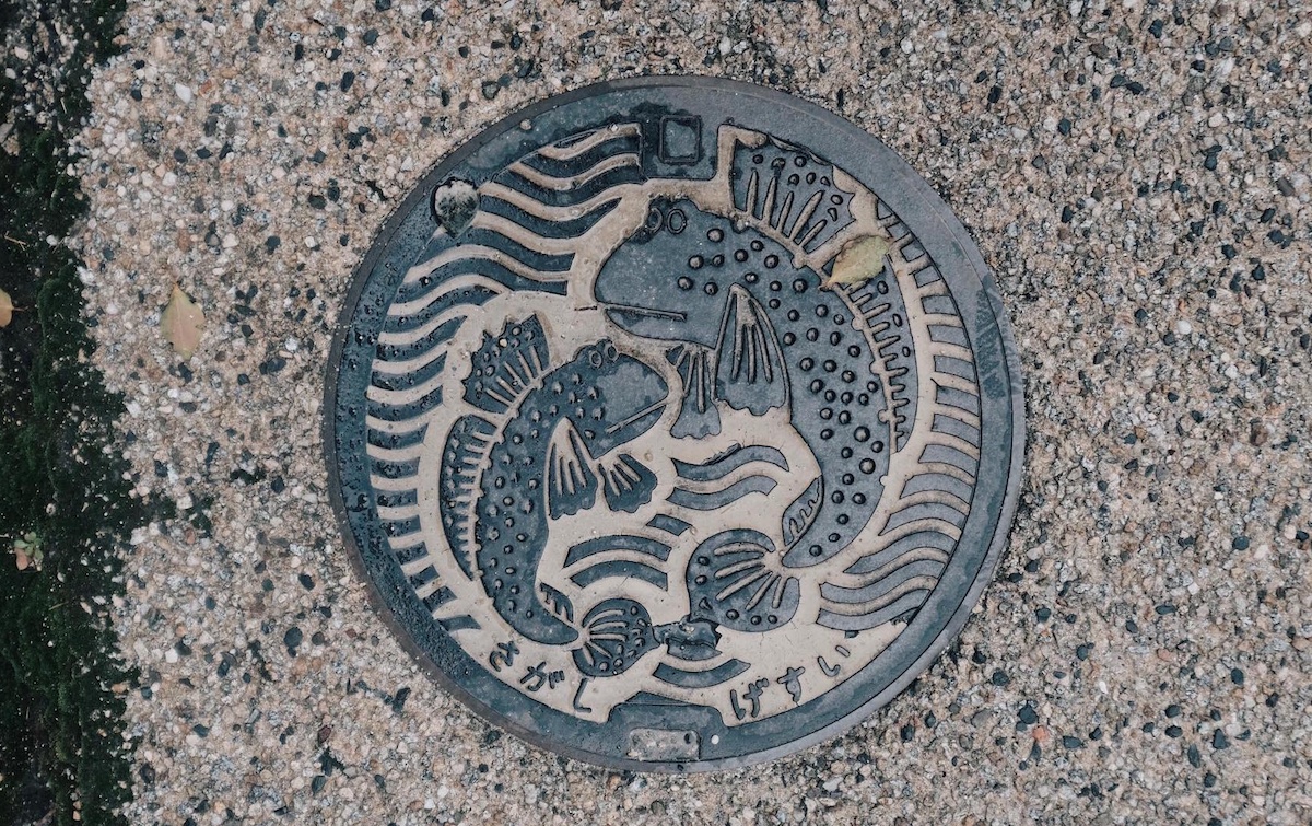 รูปสุดท้าย วาฬลาด้วย ฝาท่อระบายนำ้สวยๆ ลวดลายเฉพาะของเมืองซากะ ใครที่มาเที่ยว อย่าลืมแวะมาเก็บภาพกันด้วย