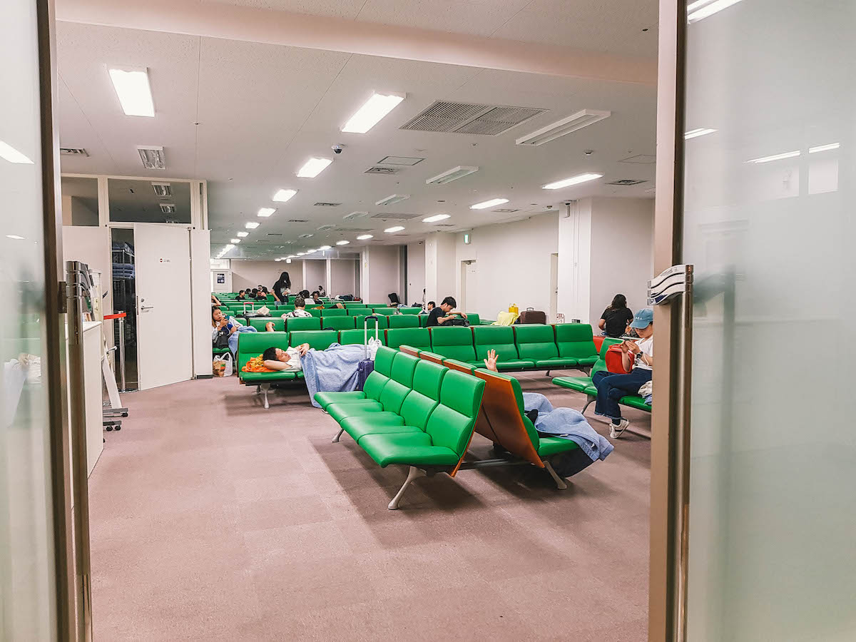 เดินทางถึงรอบดึก คืนแรกนอนฟรีที่สนามบินนานาชาติคันไซ โดยโซนพักผ่อนนี้จะอยู่ใน Aero Zone ใน Terminal 2 พอเดินเข้าประตูมาให้เดินไปสุดทางเลย ห้องจะอยู่ทางด้านซ้ายมือ