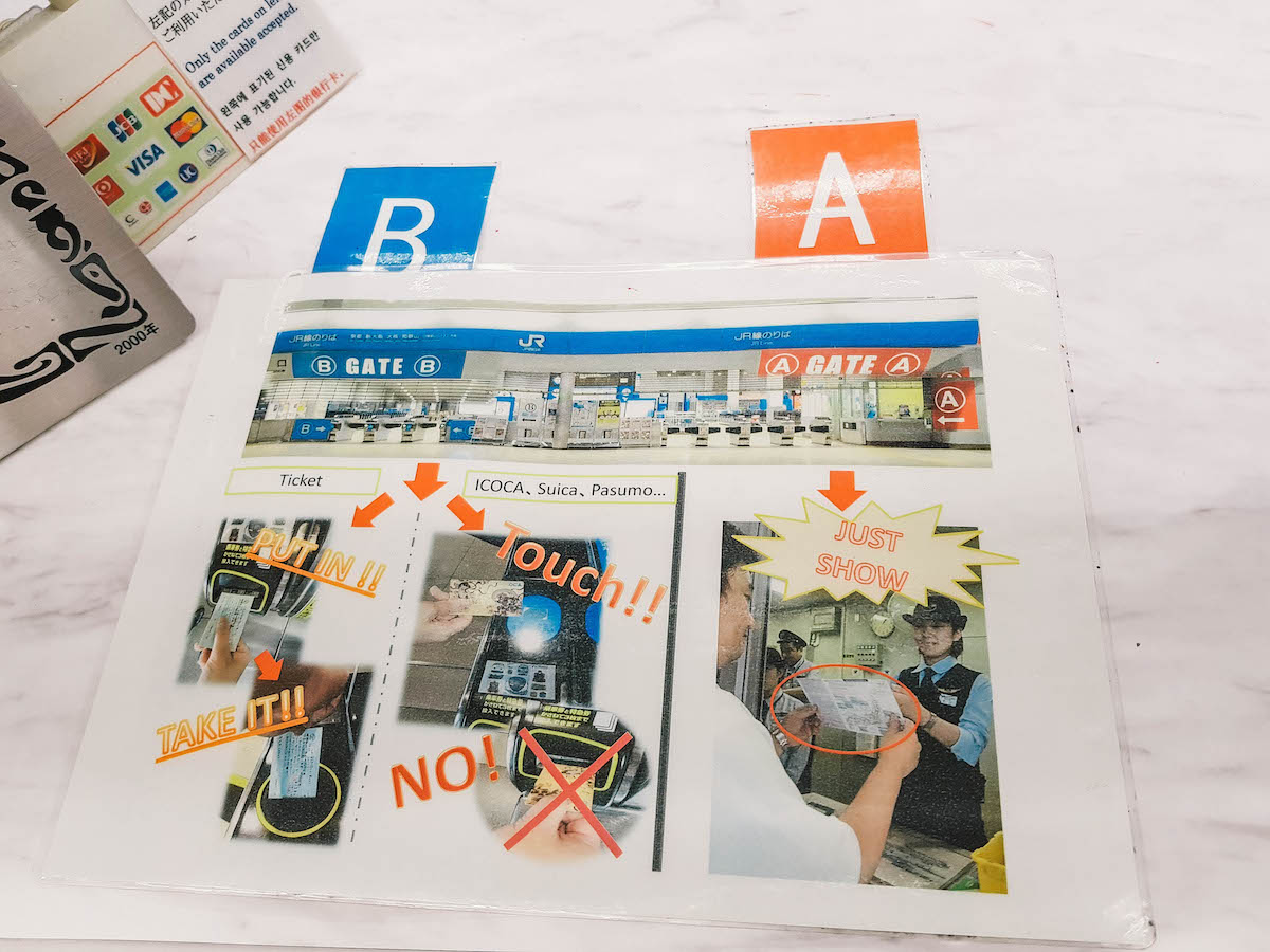 ข้างในจะแบ่งเป็นเคาท์เตอร์พูดภาษาต่างๆ ได้ เช่น เคาน์เตอร์นี้พูดจีนได้ เคาน์เตอร์นี้พูดอังกฤษได้ เพื่อความสะดวกและรวดเร็ว ซื้อตั๋วเสร็จสรรพ ไม่ต้องกลัวไปขึ้นรถผิดที่ผิดชานชาลาเลย เพราะมีแปะบอกหมด อย่างเช่นถ้าใครซื้อตั๋ว Haruka ให้เข้าประตู B ไปขึ้นรถไฟที่ชานชาลาที่ 4