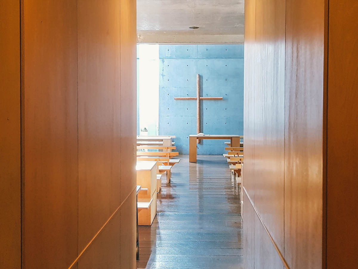 ในตัวโบสถ์ เงียบ สงบ ซึมซับแสงจากธรรมชาติ แค่นี้ก็ฟินแล้ว