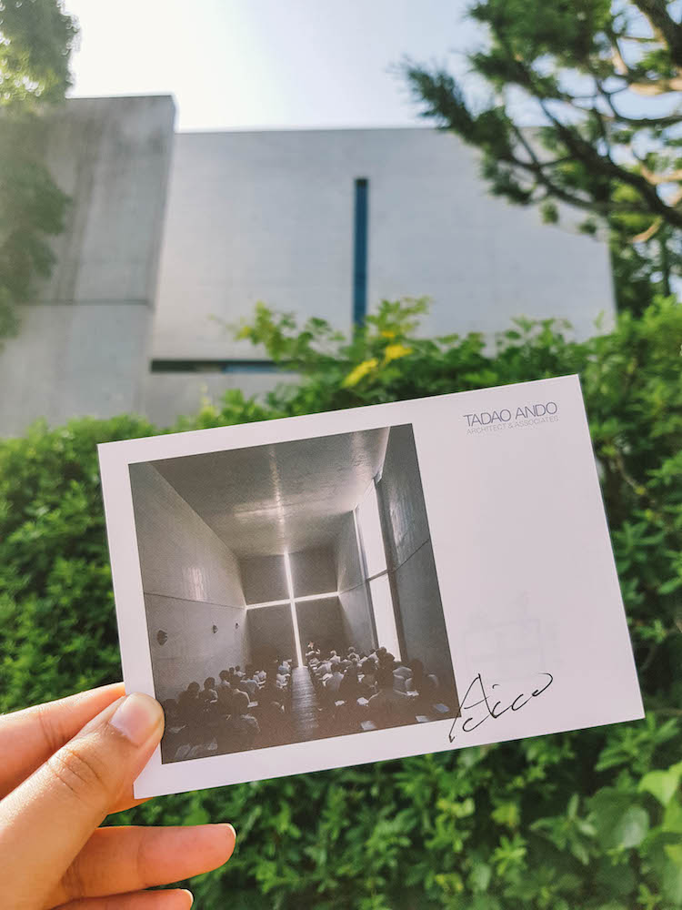 มีโปสการ์ดขายเป็นที่ระลึกด้วย ราคา 700 เยน (7 ใบ) ถ้าเอาแบบมีลายเซ็นด้วยก็ 1,000 เยน เราเลือกแบบ 1,000 เยน เพราะเห็นว่าคุ้มกว่า เสียเพิ่ม 300 เยนได้ลายเซ็นด้วย พอเดินออกมาจากโบสถ์ หยิบโปสการ์ดออกมาถ่าย สรุปว่ามีลายเซ็นแค่ใบเดียว (เท่ากับค่าลายเซ็นใบละ 300 เยน)