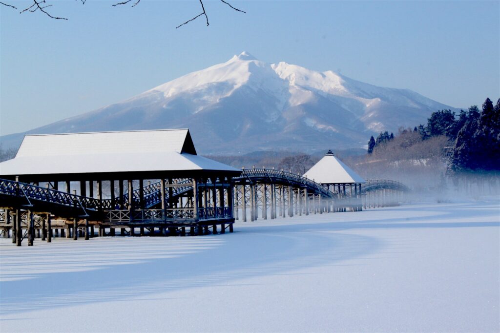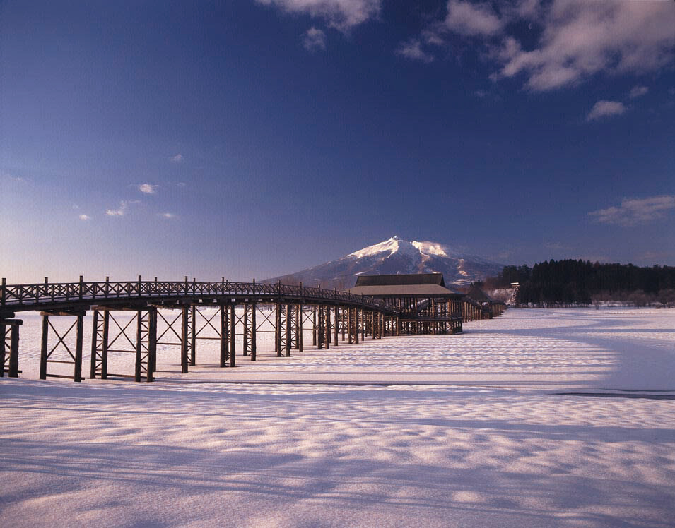 สะพานซึรุโนะไม (Tsuru no Maihashi Bridge) สร้างขึ้นในปีค.ศ. 1994 ตั้งอยู่ที่เมืองซึรุตะ (Tsuruta) จังหวัดอาโอโมริ เป็นสะพานไม้ที่ยาวที่สุดในญี่ปุ่น มีความยาว 300 เมตร ทอดตัวข้ามทะเลสาบซึงะรุฟุจิมิ (Tsugaru Fujimi Lake) ที่สะท้อนภาพของภูเขาอิวากิ (Mount Iwaki) และยังล้อมรอบไปด้วยต้นไม้และอากาศอันบริสุทธิ์ ไม่ใช่เป็นเพียงจุดชมวิวเท่านั้น ที่นี่ยังเป็นพาวเวอร์สปอตที่ให้พรเรื่องโชคลาภ การแต่งงาน และอายุยืนยาวอีกด้วย