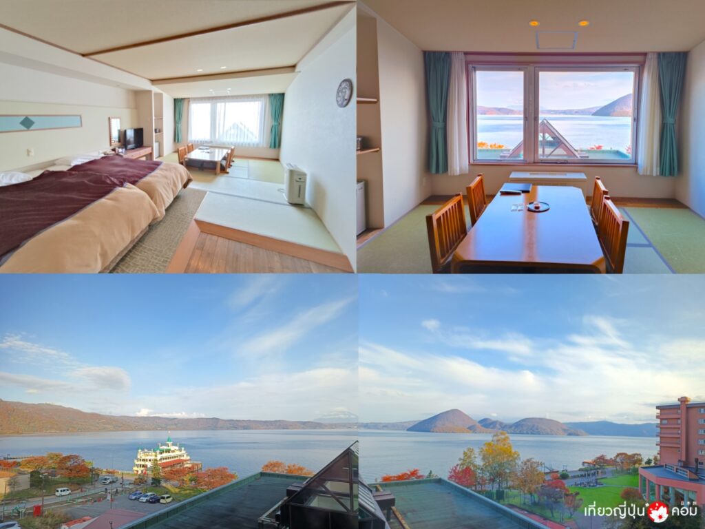 ผ่อนคลายไปกับการชมทัศนียภาพอันงดงามได้จากทุกส่วนของโรงแรม ไม่ว่าจะเป็นล็อบบี้ บ่อน้ำพุร้อน ร้านอาหาร และในห้องพักเกือบทั้งหมดสามารถมองเห็นวิวของทะเลสาบโทยะได้ มีให้เลือกประเภทห้องพักได้หลากหลายทั้ง ห้องสไตล์ญี่ปุ่น-ตะวันตก ห้องสไตล์ตะวันตก ห้องสไตล์ญี่ปุ่น