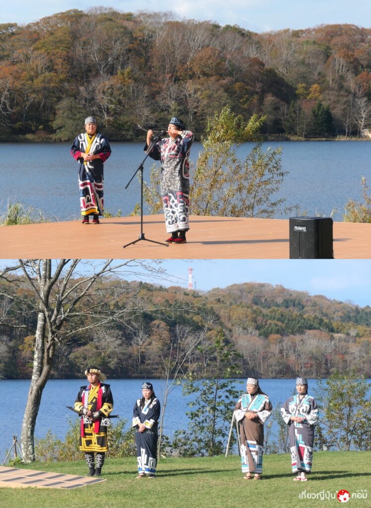 Cultural Exchange Hall ถ้ามาที่นี่ ต้องไม่พลาดกิจกรรมการแสดง มุคคุริ (พิณปาก) และทงโกริ (เครื่องดนตรีห้าสาย),  การเต้นรำทางพิธีกรรมโบราณของชาวไอนุ เช่นการเต้นรำนกกระเรียน ที่ได้รับเลือกให้เป็นมรดกทางวัฒนธรรมที่จับต้องไม่ได้ของยูเนสโก ภายในห้องโถงจะมองเห็นทะเลสาบโพโรโตะ และหมู่บ้านไอนุแบบดั้งเดิมท่ามกลางธรรมชาติอันอุดมสมบูรณ์ ผ่านหน้าต่างกระจกที่เป็นฉากหลังของเวที และที่ทำให้การแสดงน่าประทับใจมากก็คือการฉายภาพฉากหลังที่งดงามสุดตระการตาระหว่างการแสดง