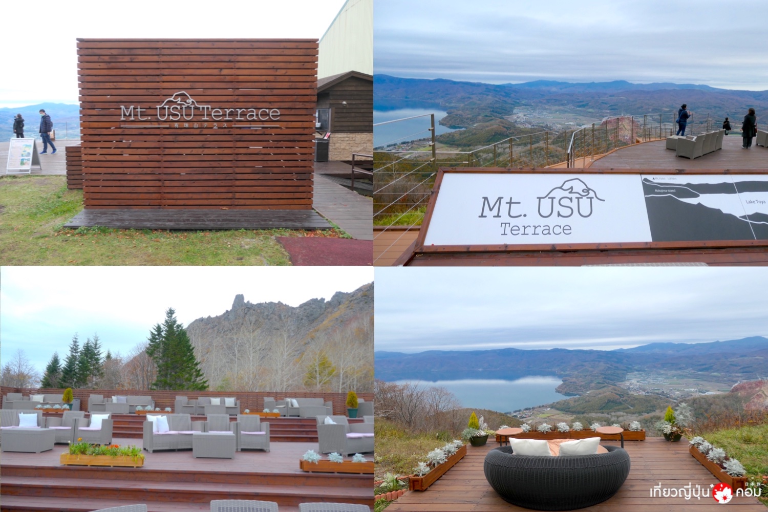จุดชมวิวใหม่ล่าสุดที่อยากจะแนะนำก็คือ Mount USU Terrace เพิ่งเปิดเมื่อฤดูใบไม้ผลิ 2021 ที่ผ่านมา นั่งชมวิวตรงโซนโซฟาบนเฉลียงที่มองเห็นวิวทะเลสาบโทยะ โดมลาวาโชวะชินซังและอื่นๆ นอกจากนี้ตรงโซนระเบียงก็ได้รับการขยายครอบคลุมพื้นที่บนดาดฟ้าถึง 670 ตร.ม. (ใหญ่กว่าเดิมประมาณ 1.4 เท่า) สามารถจุคนได้เพิ่มขึ้นเป็นสูงสุด 56 ที่นั่ง แวะสั่งเครื่องดื่มสมูตตี้ออแกนิคจากวัตถุดิบท้องถิ่นที่ Cafe Mt. USU ใกล้ๆกันด้วยนะ