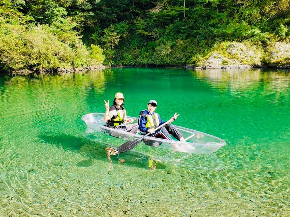 ถ้าชอบกิจกรรมเอาท์ดอร์ต้องมาที่นี่ให้ได้! ที่นี่เป็นศูนย์สำหรับทำกิจกรรมเอาท์ดอร์ที่คุณสามารถสัมผัสประสบการณ์การพายเรือคายัคและ SUP ในแม่น้ำ Niyodo ที่สวยงาม ครั้งนี้นะนะเลือกเรือคายัคแบบคริสตัล แม่น้ำใสจนมองเห็นตัวปลาและก้นแม่น้ำเลยค่ะ