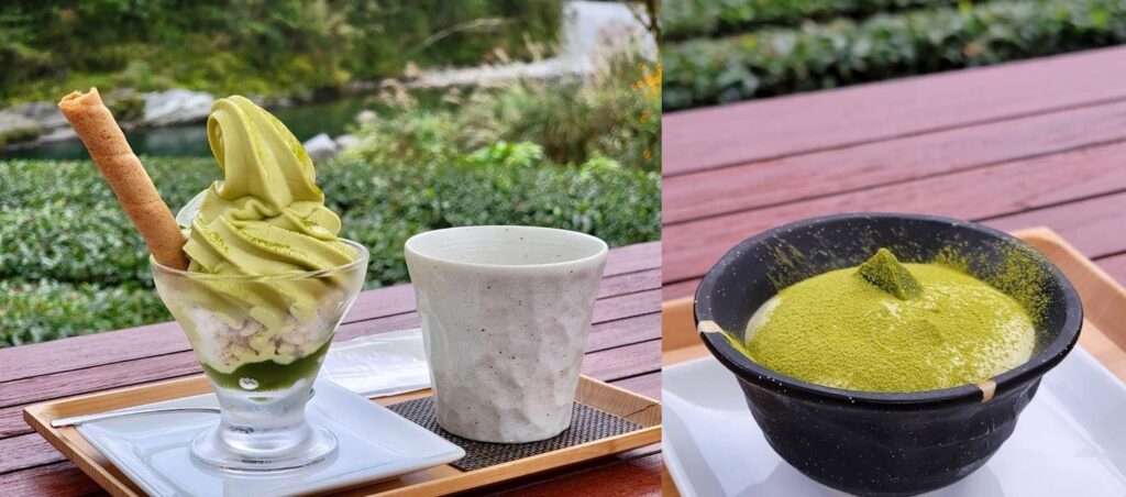 ภายในบริเวณร้าน Ikegawa Cha-en Cafe มีไร่ชาเล็ก ๆ ที่ซึ่งเราจะได้ผ่อนคลายหลังจากออกกำลังกาย พร้อมชมน้ำสีฟ้าของแม่น้ำ Niyodo ที่ไหลผ่านอยู่ด้านข้าง