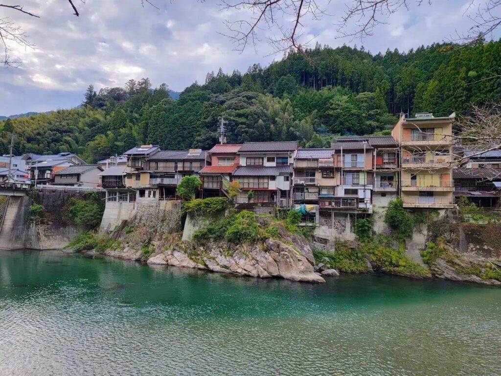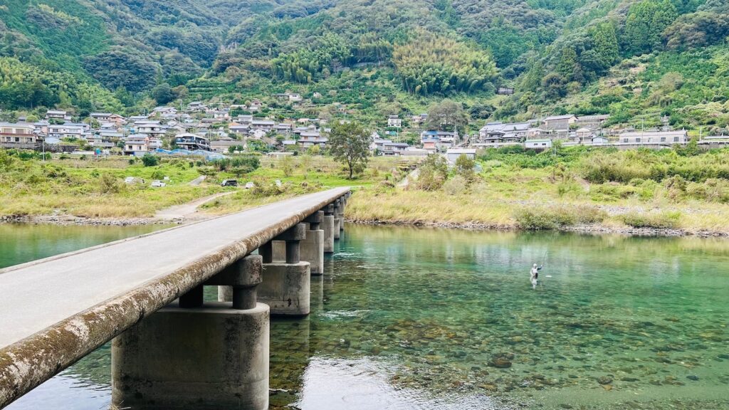ภาพนี้ดูเหมือนในอนิเมะเป๊ะ ๆ เลยใช่มั้ยล่ะคะ? ที่นี่ถูกโอบล้อมด้วยภูเขาเขียวขจี อากาศปลอดโปร่ง ทุกคนจะสัมผัสได้ถึงความอุดมสมบูรณ์ของธรรมชาติ ตอนที่ไป มีกำลังตกปลาในแม่น้ำใสด้านล่าง เป็นใช้เวลาไปช้า ๆ ในบรรยากาศสบาย ๆ รู้สึกดีมากที่ได้มาชมวิวสะพานจากมุมต่าง ๆ และไม่พลาดเช็คอินบน SNS ด้วย