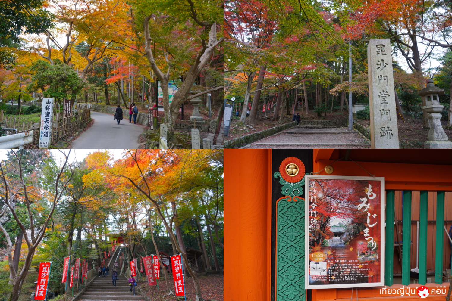 วัดบิชามอนโด (Bishamondo Temple) วัดในนิกายเทนได (Tendai) ตั้งอยู่บริเวณเชิงเขายามาชินะ ใบเมเปิ้ลสีแดงที่ร่วงหล่นลงมาปกคลุมทางเดินยาวตลอดแนวจนไปถึงวัด ทำให้ดูเหมือนเป็นอุโมงค์ต้นไม้เปลี่ยนสี เป็นภาพที่ทำให้ใครหลายคนอยากมาเยือนวัดแห่งนี้ ซึ่งจะตเ้องมาปลายฤดูใบไม้ร่วงจึงจะได้เห็นภาพดังกล่าว ใครที่ได้มีโอกาสมาแล้วก็อย่าลืมไปไหว้พระขอพรที่นี่ ซึ่งเชื่อกันว่าจะทำให้การค้าขายเจริญรุ่งเรืองและครอบครัวมีความสุขปลอดภัยจากอันตรายต่างๆ