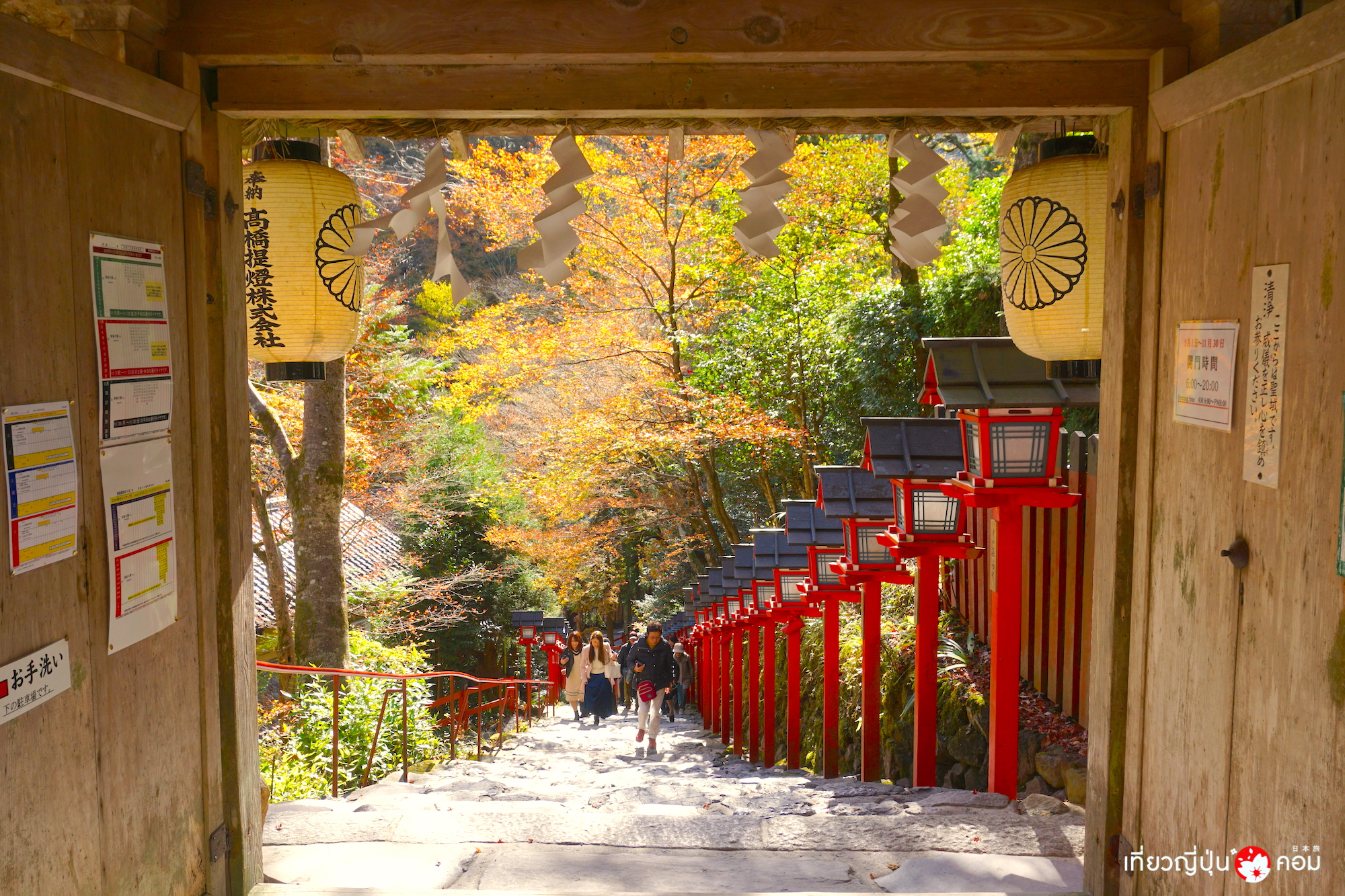 ศาลเจ้าคิฟุเนะ (Kifune Shrine) ศาลเจ้าของเทพเจ้าแห่งน้ำ ที่แวดล้อมไปด้วยธรรมชาติ ที่คงเอกลักษณ์ของเสาโคมไฟที่ตั้งเรียงรายขนานไปกับขั้นบันไดหินสู่ตัวศาลเจ้า โดยฤดูใบไม้ร่วง เป็นฤดูที่คนนิยมมาเที่ยวชมกั