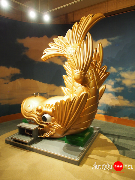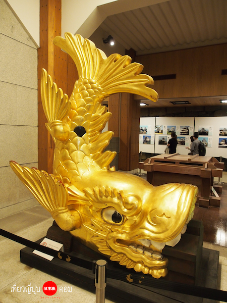 เข้ามาด้านในก็จะเจอกับปลาโลมา (เค้าว่ายังงั้น) สีทอง มีชื่อเรียกเป็นภาษาญี่ปุ่นว่า Kinshachi 金鯱 ที่เปรียบเสมือนเป็นสัญลักษณ์ของปราสาทนาโกย่าแห่งนี้ ซึ่งจะมองเห็นจากบนยอดหลังคาของปราสาท ในอดีต Kinshachi เป็นสิ่งที่บ่งบอกถึงอำนาจในการปกครองของขุนนางในยุค Muromachi (ปี 1334-1400) แต่หลังจากที่ปราสาทได้ถูกเผาทำลายลงในช่วงสงครามโลกครั้งที่สอง ก็ได้มีการสร้าง Kinshachi ขึ้นมาใหม่อีกครั้งในปี 1959 เพื่อเป็นการรวบรวมขวัญกำลังใจของชาวนาโกย่าให้กลับมาอีกครั้งนั่นเอง