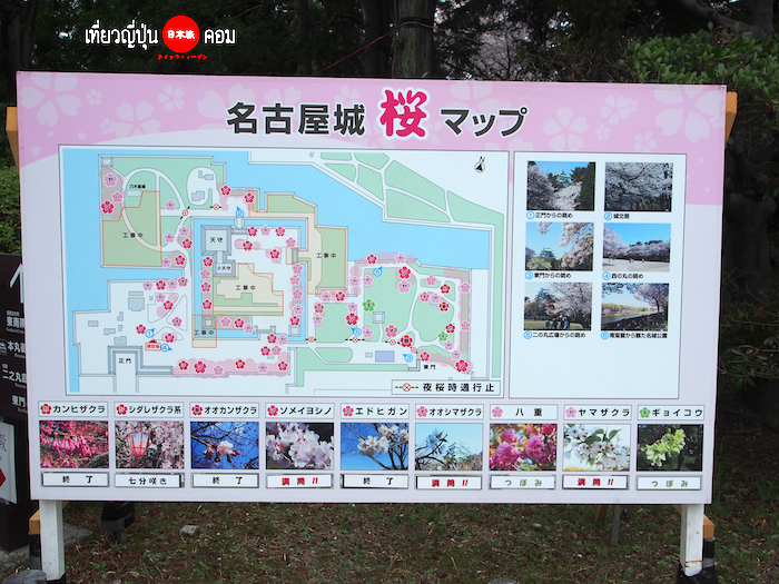 จุดชมซากุระรอบๆปราสาทนาโกย่า บอกสายพันธุ์ต่างๆด้วย