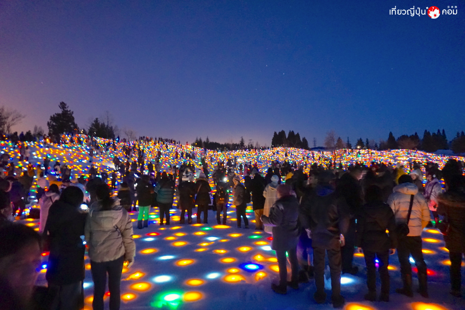 Flower Field of Light Area 光の花畑エリア จากทางเข้า เราจะได้รับดวงไฟคนละ 1 อัน มีหลากสี โดยเราจะต้องนำมันมาฝังไว้ใ