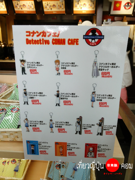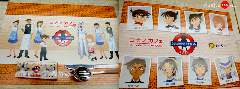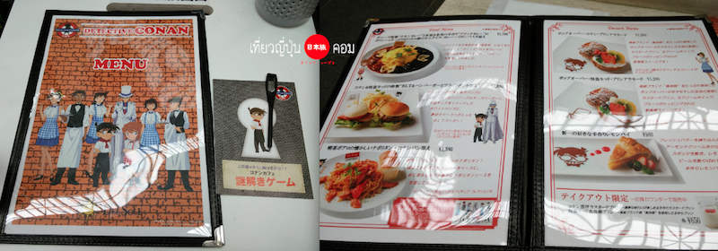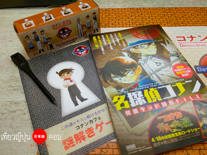 เมื่อสั่งเมนูอาหารจะได้รับ ฟิกเกอร์ 1 ชิ้น และมังงะฉบับมินิ ตอนพิเศษ ซึ่งเป็นสินค้าพิเศษสำหรับโคนันคาเฟ่เท่านั้นครับ