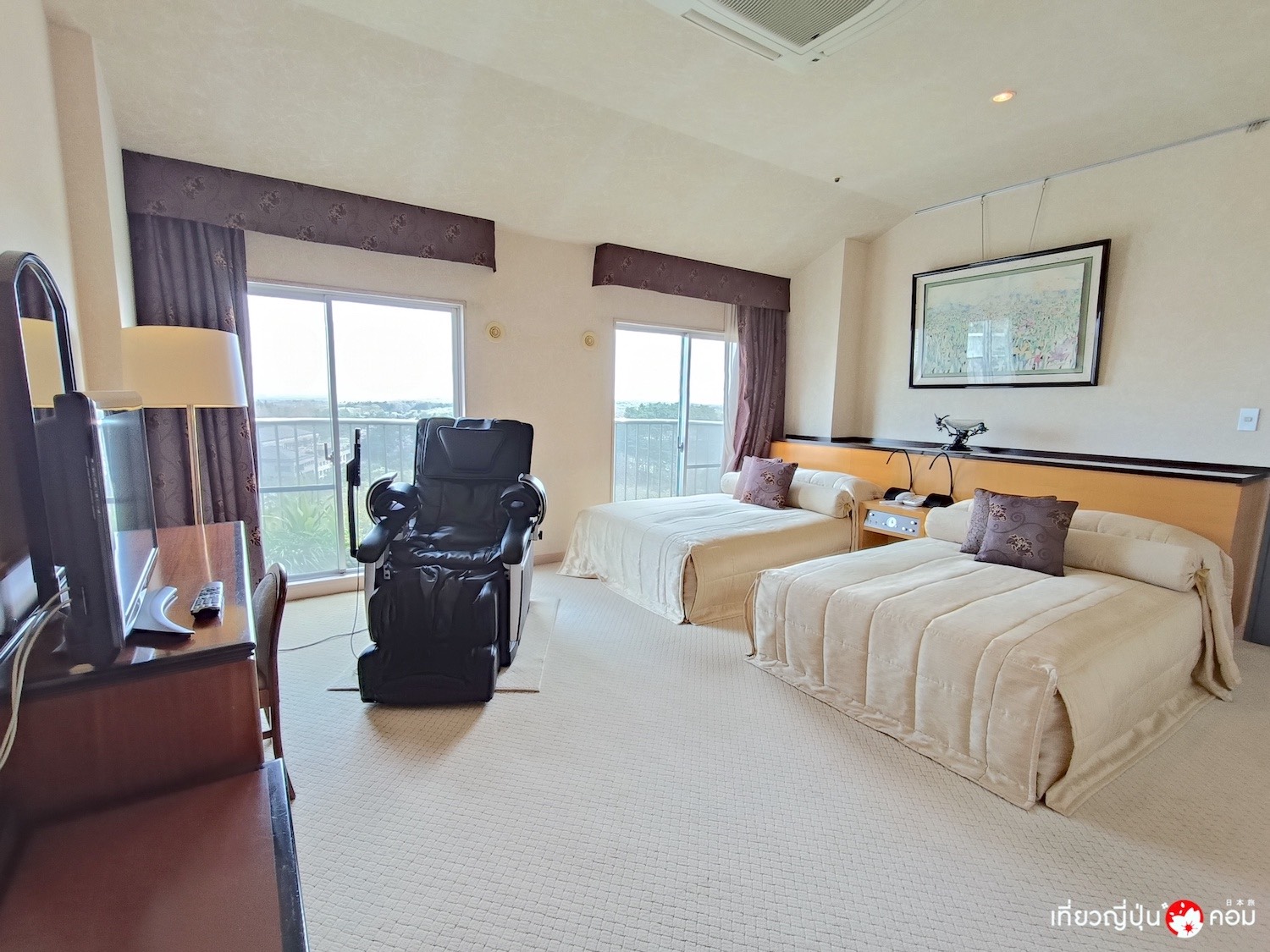 ครั้งนี้เราเข้าพักในห้องแบบ Deluxe Twin ที่มีระเบียงหันหน้าออกสู่ขุนเขาเขียวขจี และได้ดื่มด่ำกับวิว Sunset จากห้องได้อีกด้วย