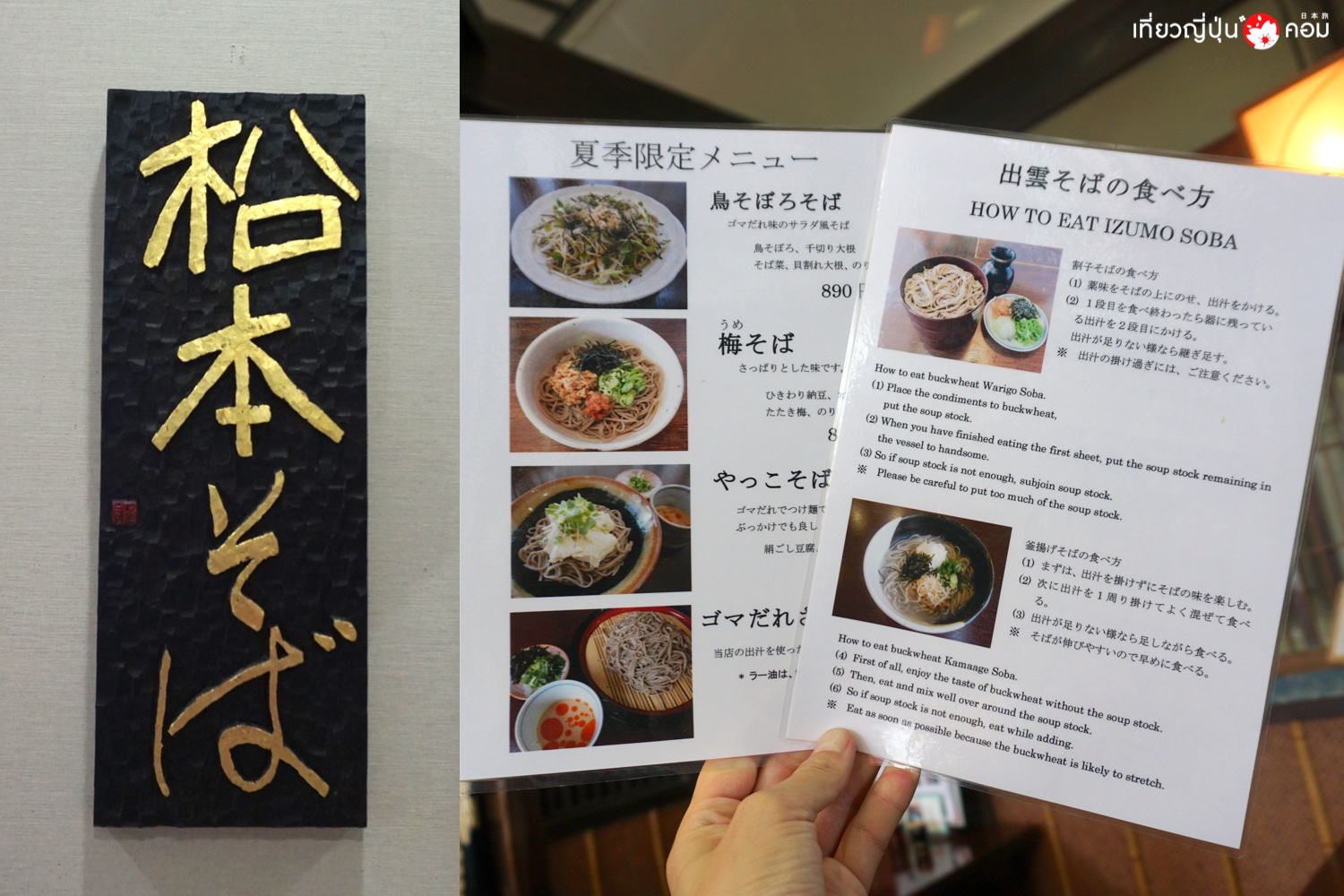 ร้านนี้มีชื่อว่า Matsumoto Soba ten เป็นร้านอิซุโมะโซบะเก่าแก่ กว่า 200 ปี เป็นที่โปรดปรานของท่านเจ้าเมือง โดยเจ้าของร้านเป็นเชฟปรุงอาหารประจำตัวให้กับท่านเจ้าเมืองเลย จุดเด่นของร้านนี้ นอกจากรสชาติแสนอร่อยแล้ว จะมีความหลากหลาย เพิ่มเมนูให้สำหรับคนท้องถิ่นที่ทานบ่อยๆ จะได้ไม่เบื่อ มีทางเลือกมากขึ้น