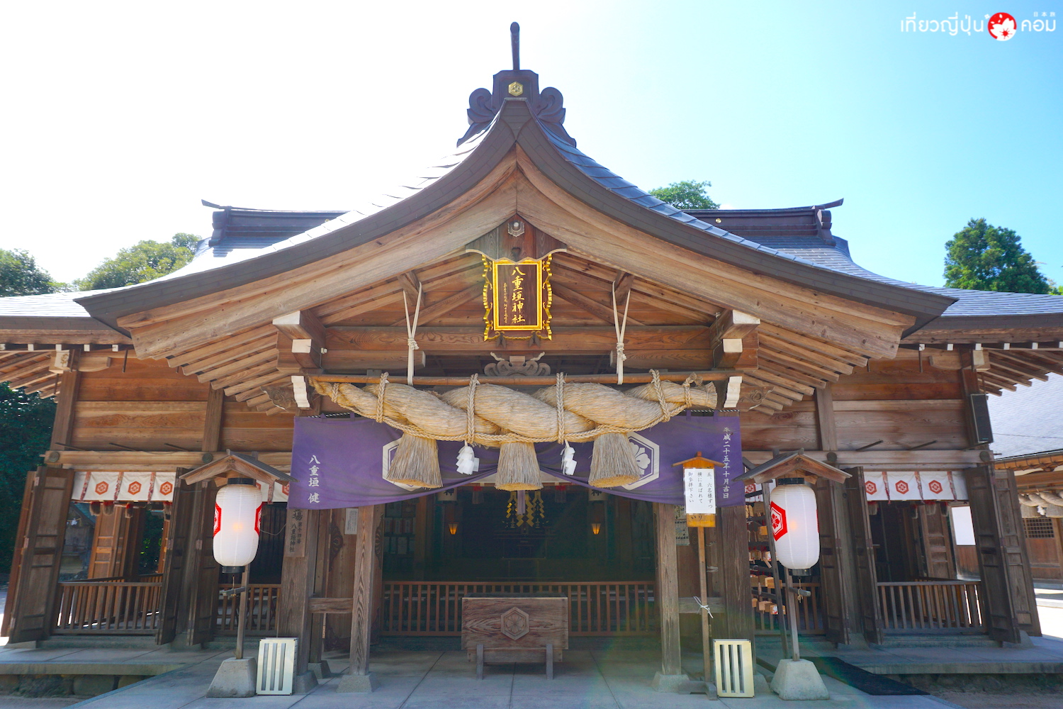 ศาลเจ้ายะเอะกะคิ (Yaegaki Shrine) มีความเก่าแก่เป็นอย่างมาก สร้างขึ้นตั้งแต่ยุคเฮอัน มีอายุพันกว่าปี ขึ้นชื่อเรื่องเสี่ยงทายหาคู่ (Enmusubi) เมื่อมาถึงจะพบกับต้น Meoto Tsubaki ตรงข้ามศาล จาก 2 ต้นรวมกันเป็นหนึ่ง เปรียบเสมือนคู่ครอง ที่เชื่อกันว่าได้รับพลังมาจากศาลเจ้านี้