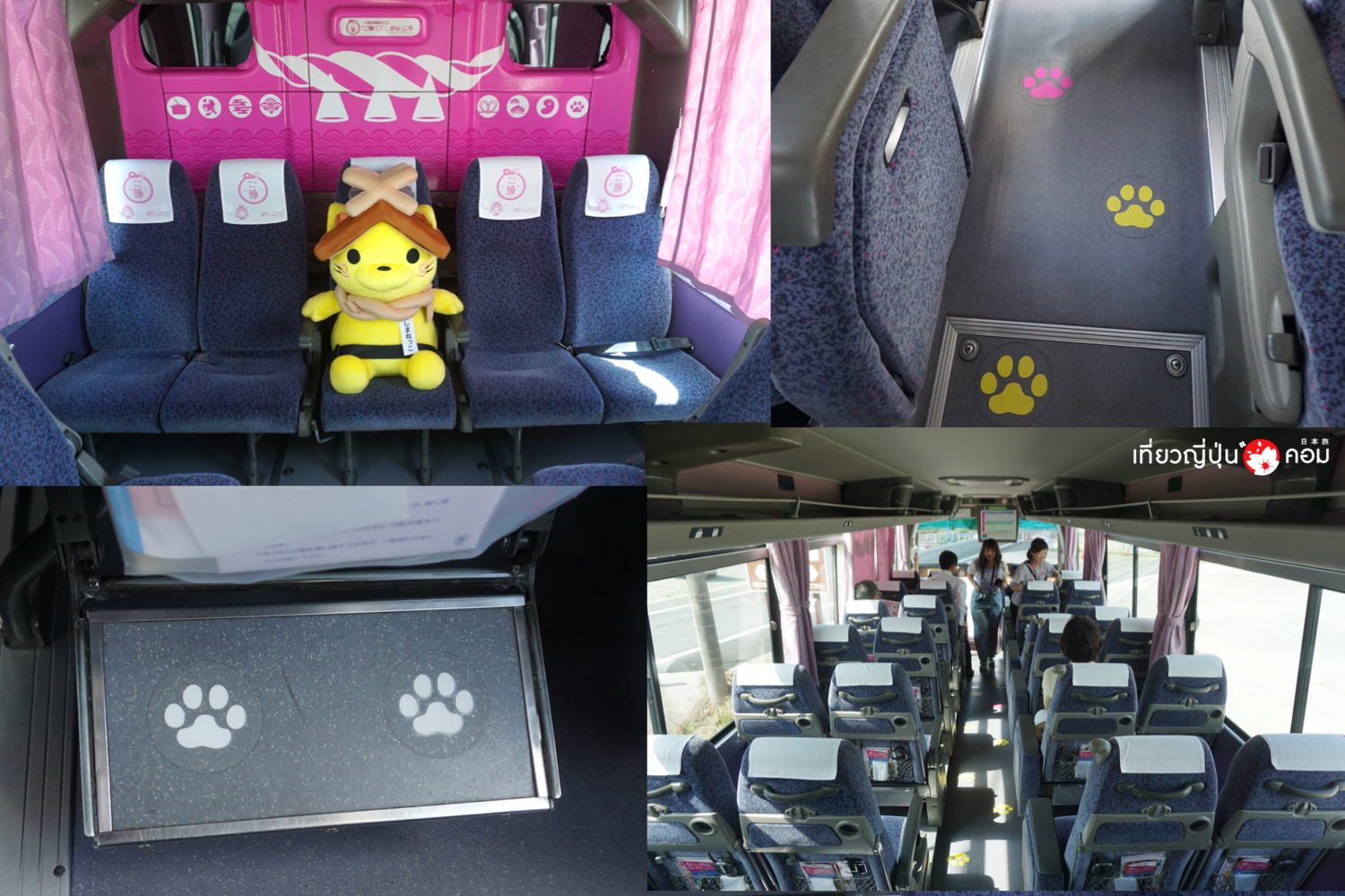 จุดขึ้นรถบัส อยู่ด้านหน้าสถานี ป้ายหมายเลข 8 ให้มองหารถบัสสีชมพู ที่มีลายชิมะเนคโกะนี้เอาไว้