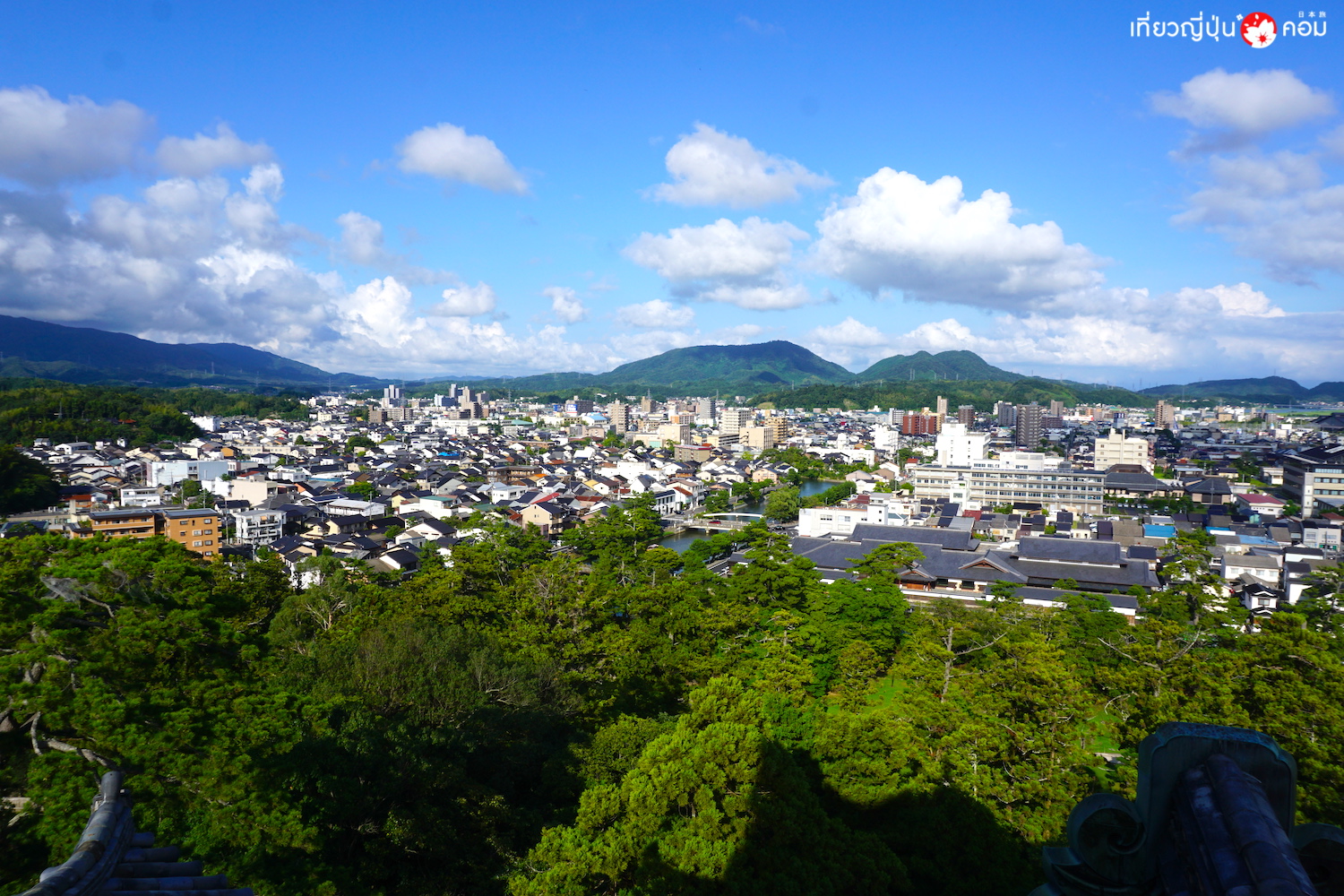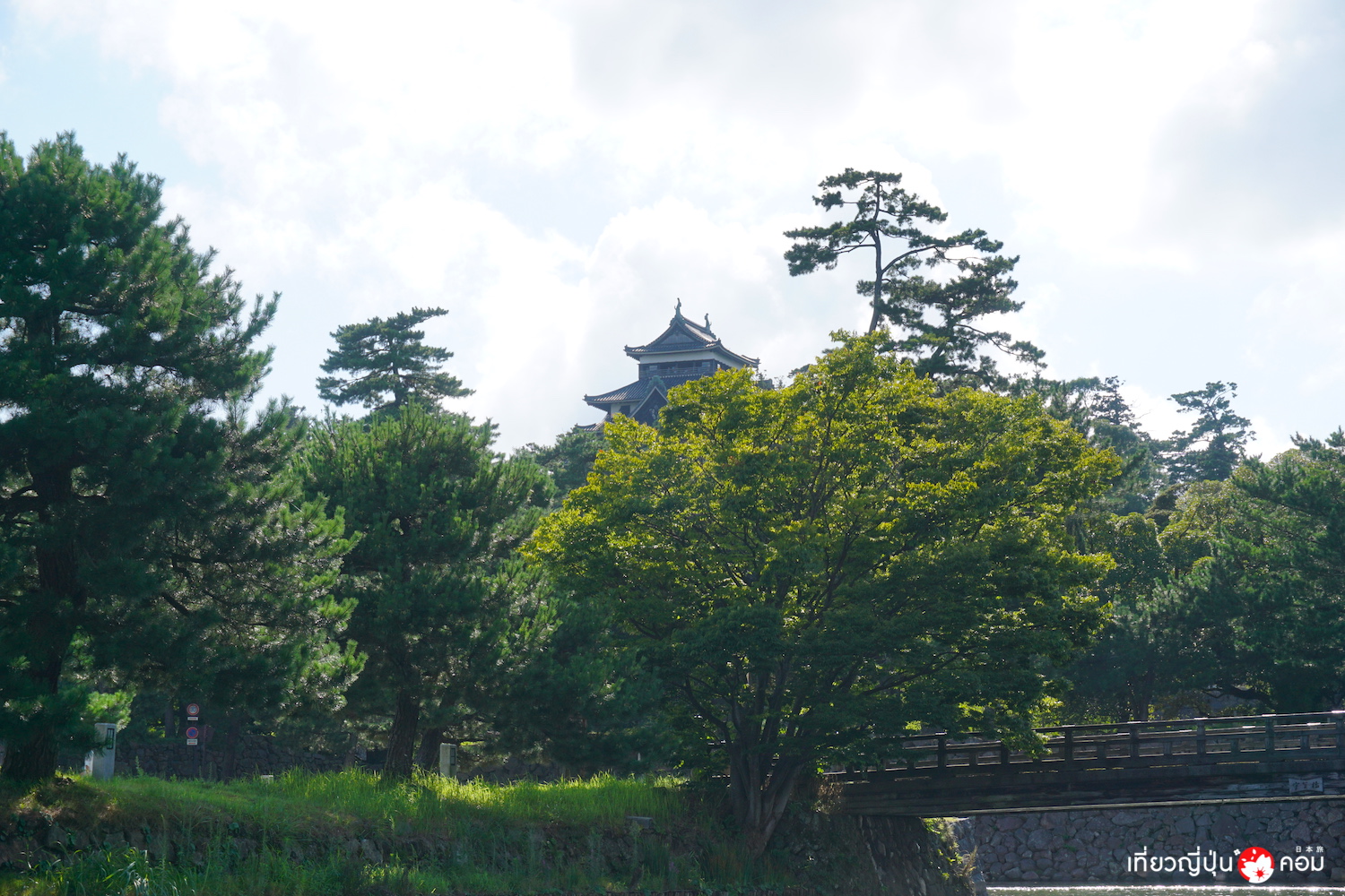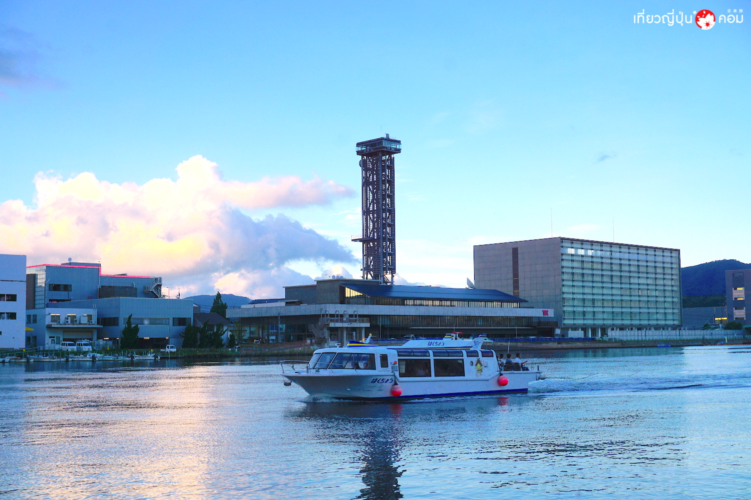 ใกล้ถึงท่าจอด มองเห็นยอดปราสาทมัตสึเอะอยู่ใกล้ๆ