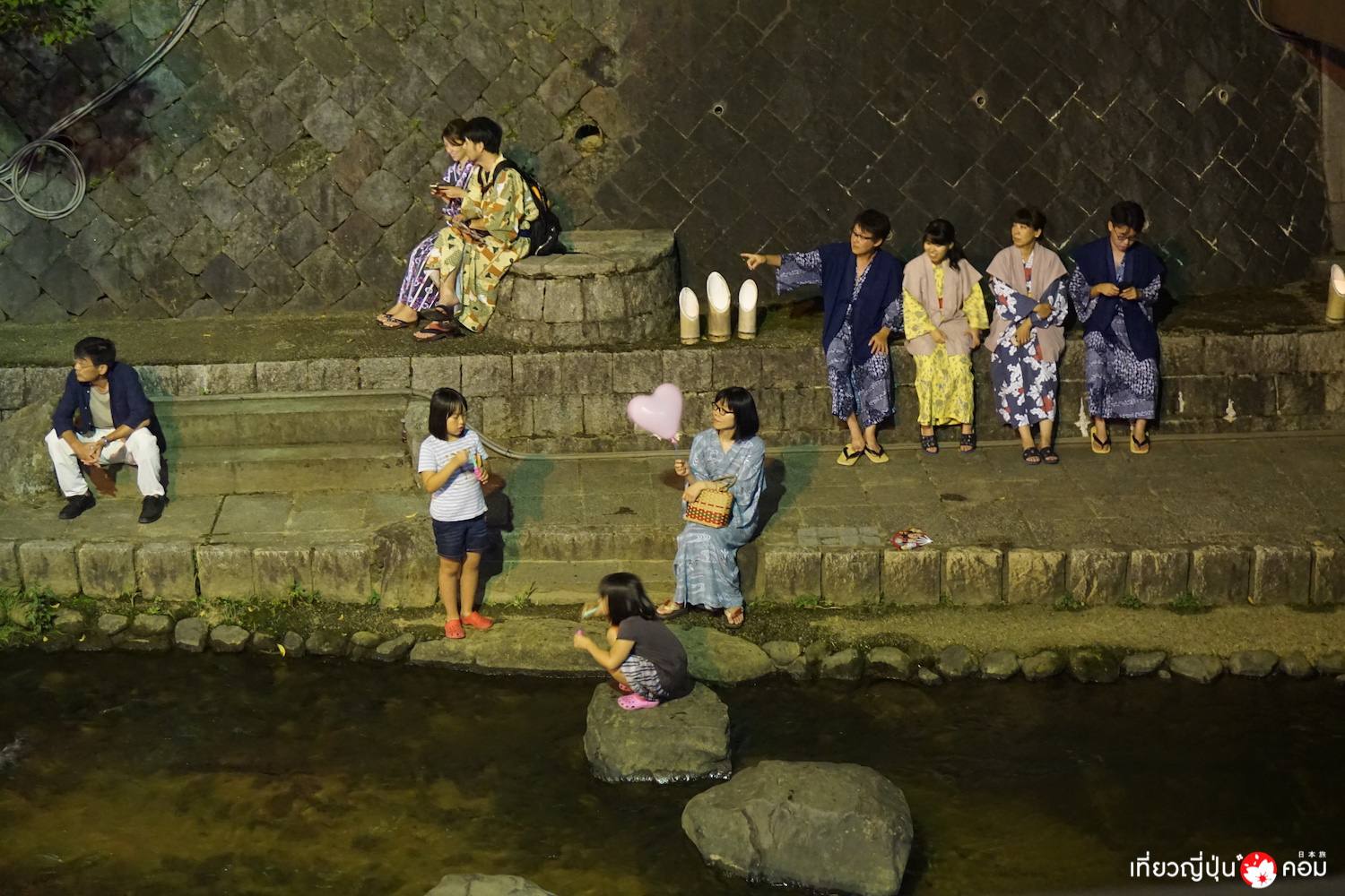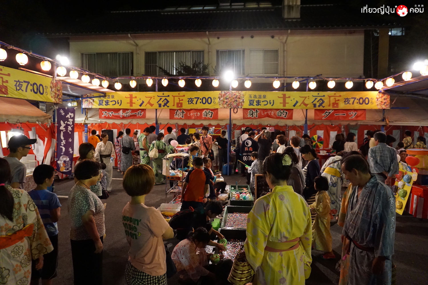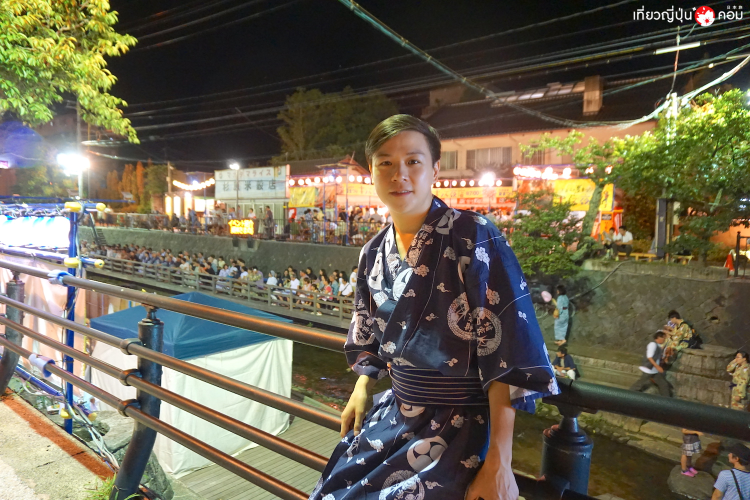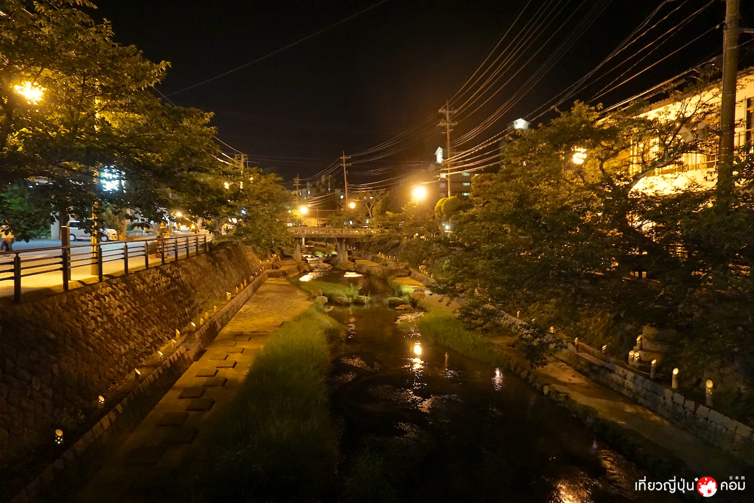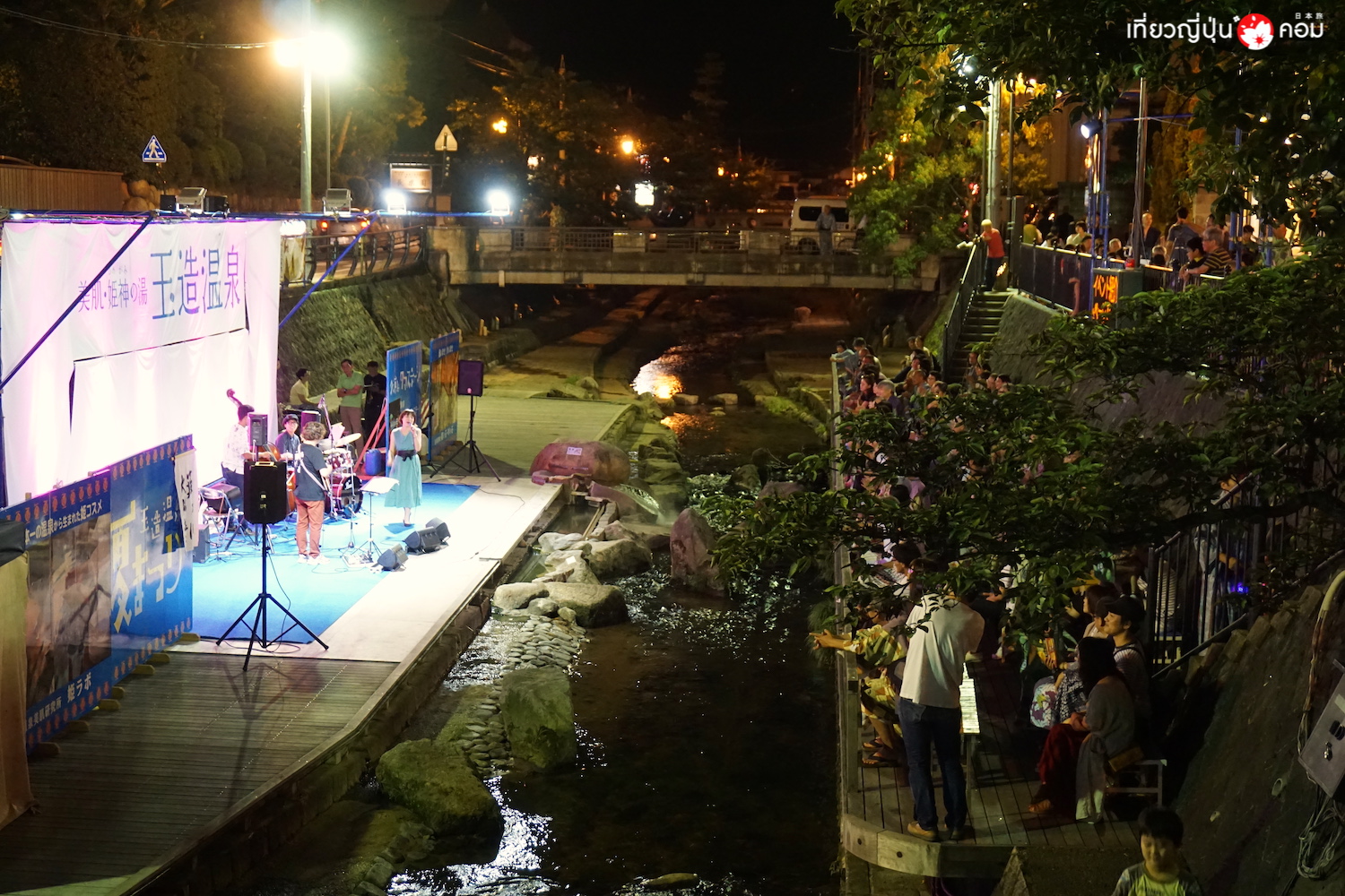 ในตอนกลางคึน จะมีการจัดงานประดับแสงไฟด้วยโคมไฟไม้ไผ่นับพันโคม โดยนักท่องเที่ยวสามารถมีส่วนร่วมกับงานในครั้งนี้โดยการใส่ชุดยูคาตะและถือตะเกียงไฟเดินเล่นชมวิวเมืองได้ ส่วนตะเกียงไฟจะมีบริการให้ยืมจากเรียวกังต่างๆในบริเวณนั้น และมีงานเทศกาลแบบญี่ปุ่น และ เวทีการแสดงให้ชมกันอย่างเพลิดเพลิน เริ่มตั้งแต่เวลา 18.30 – 22.30 น.