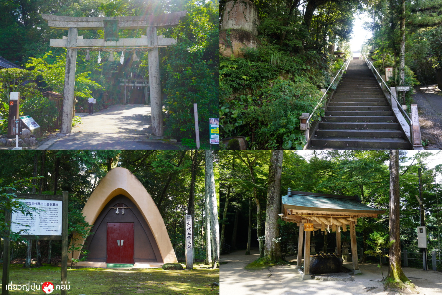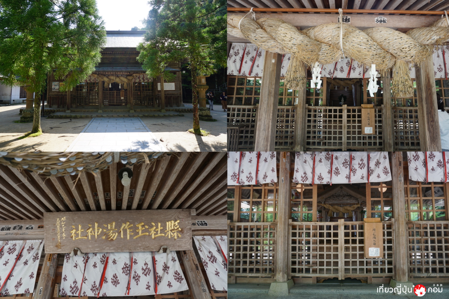 บริเวณด้านหน้าวิหารหลักของศาลเจ้า จะมีเชื่อขนาดใหญ่ที่สานและผูกไว้อยู่ เรียกว่า Shimenawaและมีการสอดเหรียญเอาไว้ด้วย มีความเชื่อกันว่า ถ้าทำแบบนี้ พระเจ้าจะคอยปกปักษ์รักษาอยู่เคียงกายเราตลอดเวลา