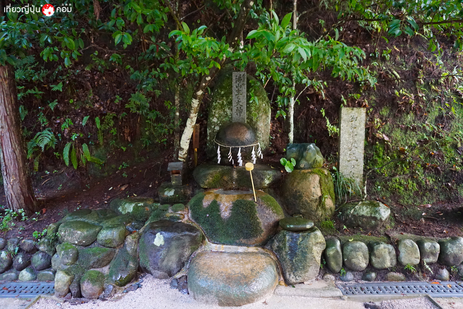 เข้ามาด้านใน ให้มองหาหิน Negaiishi ที่อยู่ด้านข้างศาลเจ้า ให้นำหินที่ซื้อมาขูดหินก้อนใหญ่เพื่อรับพลัง และเขียนคำขอพรลงในกระดาษ ใบนึงใส่พร้อมหินที่ขูดแล้วลงในถุงเครื่องรางและพกติดตัวไว้ อีกใบให้ใส่ในกล่องที่ศาล