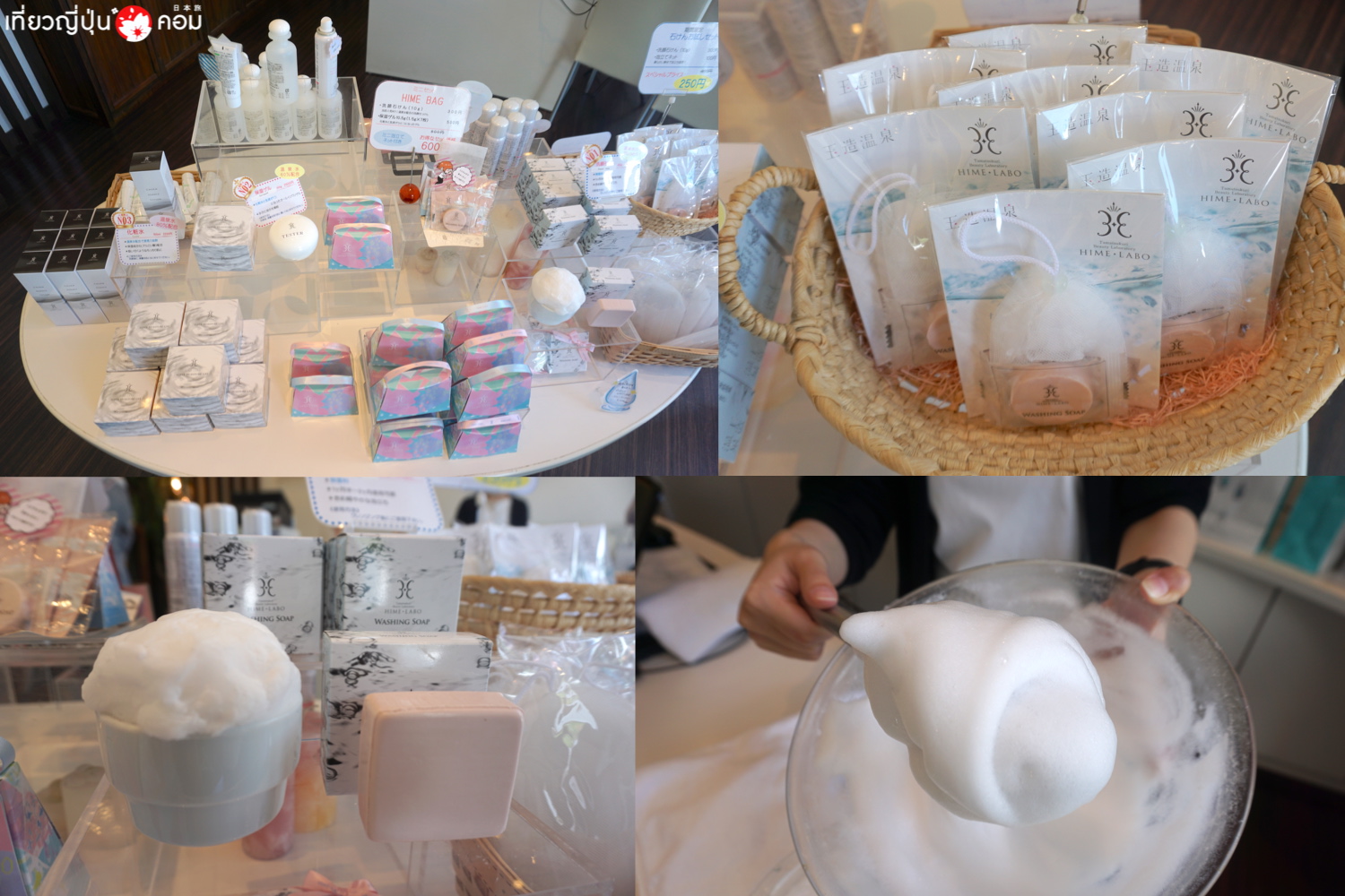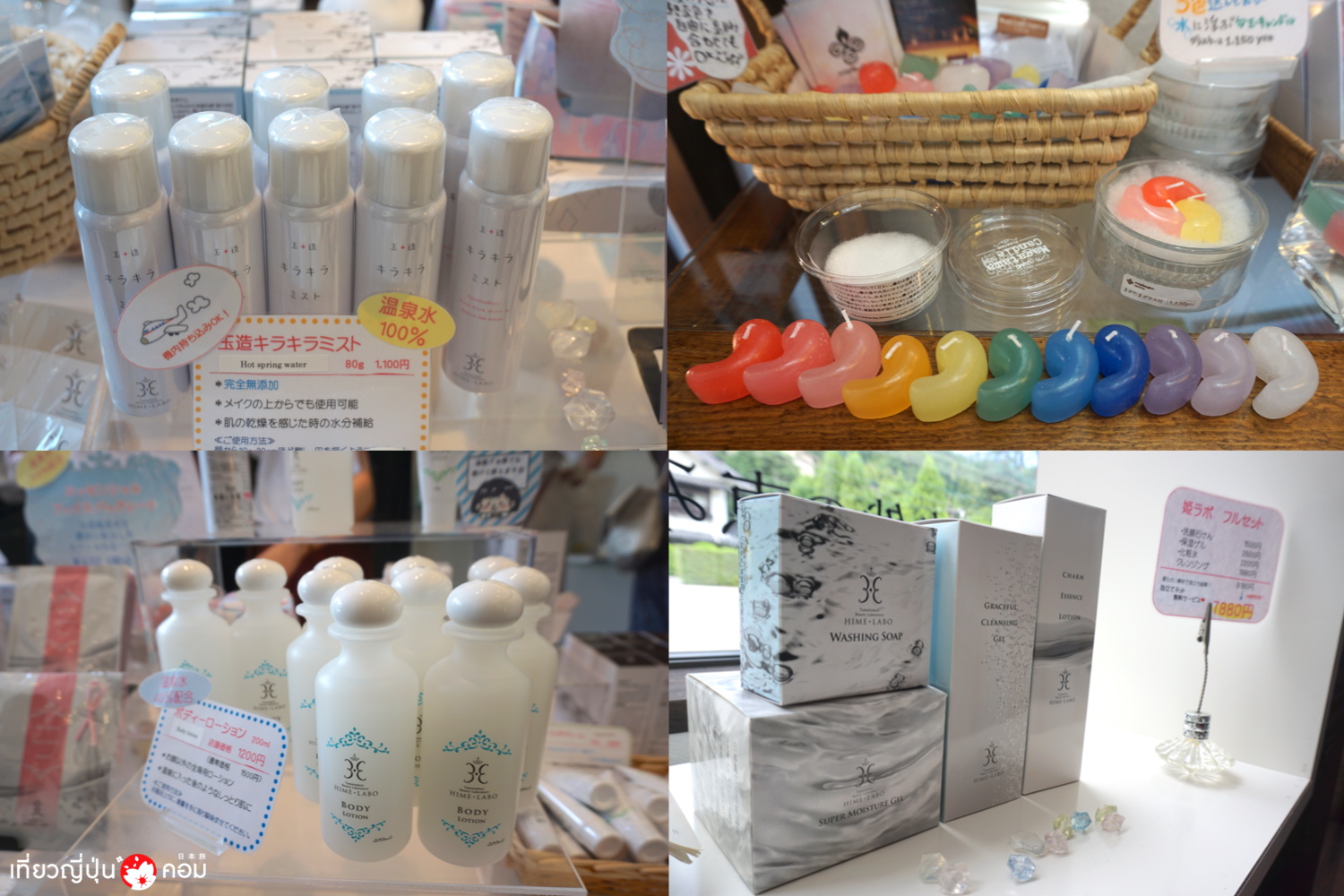 และต่อมาเราพามาร้านที่สาวๆน่าจะชอบกัน มีชื่อว่า Hime Labo ร้านขายเครื่องสำอางค์มี่มีส่วนผสมของน้ำออนเซ็นที่นี่ มีน้ำแร่แบบฉีดหน้า ห้ามเขย่าก่อนใช้ และ สบู่ล้างหน้าที่มีฟองนุ่ม เปิดตั้งแต่เช้ายันค่ำ ด้วยเหตุผลที่ว่า ช่วงเช้าและช่วงเย็น เป็นช่วงที่นักท่องเที่ยวมาเดินเยอะที่สุด ยอดขายของร้านก็โตขึ้นตามไปด้วย เข้าสู่เว็บไซต์ >> HIME LABO