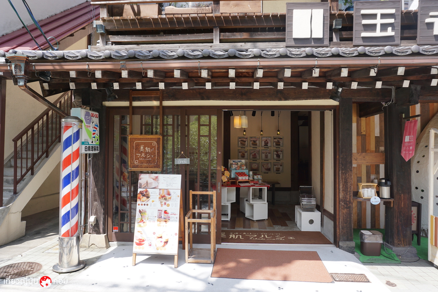 ในตัวเมืองมีจุดให้แวะนั่งพัก แช่เท้าในน้ำพุร้อน (Ashiyu) ด้วย