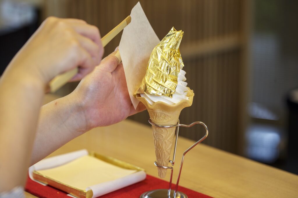 คานาซาวะมีชื่อเสียงในด้านทองคำเปลว ซึ่งคิดเป็น 99% ของการผลิตทองคำเปลวในญี่ปุ่น ขึ้นชื่อด้านงานฝีมือโดยใช้ทองคำเปลว และก็ยังนิยมทำเป็นอาหารอีกด้วย ขอแนะนำ ซอฟต์ครีมทองคำ (Kagayaki Soft) ที่ร้าน Hakuichi มีหลายสาขา อาทิ Higashiyama, Kenrokuen มาถึงแล้วห้ามพลาดเลยนะ