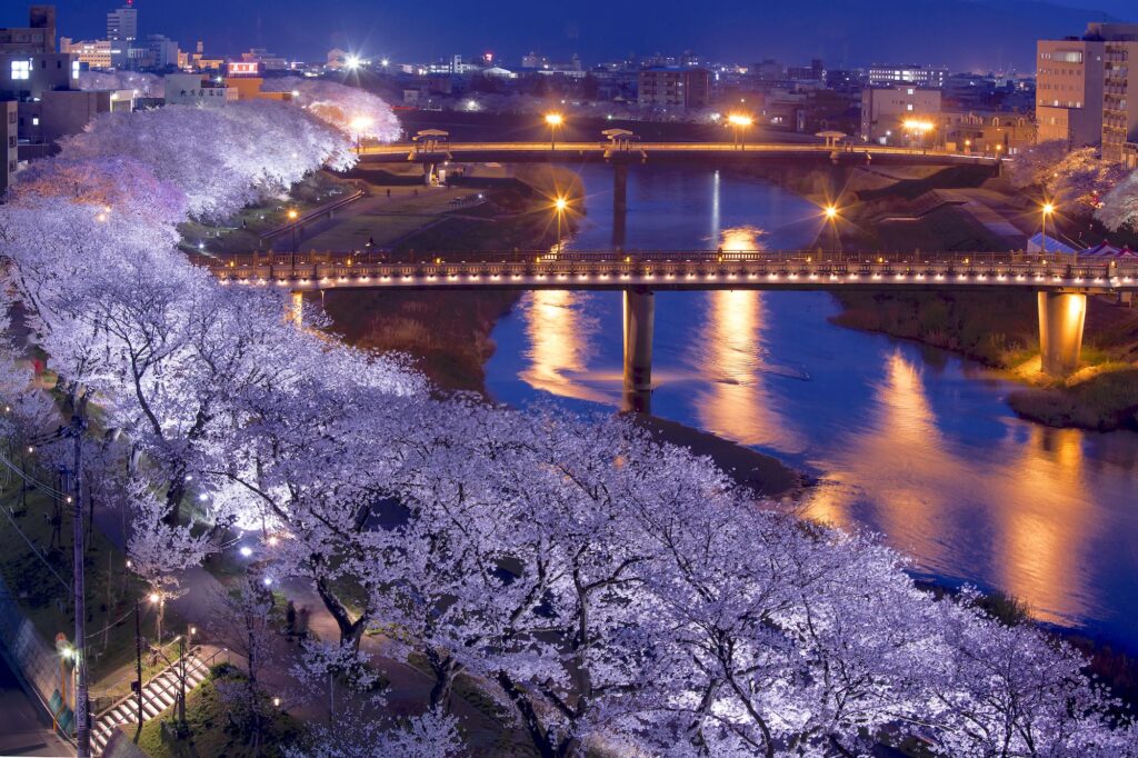 ⑫ จุดชมซากุระริมแม่น้ำอาสุวะ