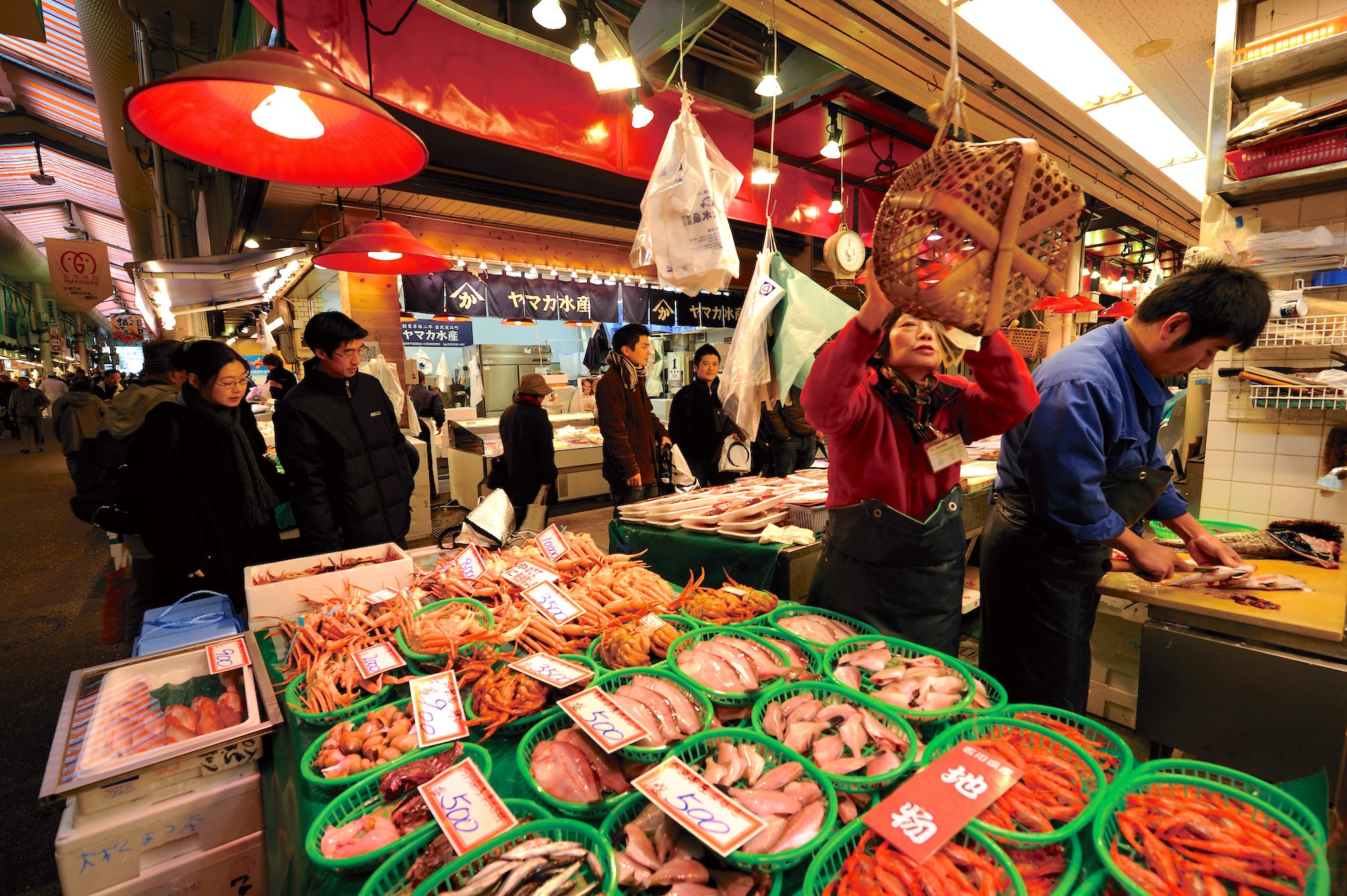 ตลาดสดโอมิโจ (Omicho Ichiba) เป็นตลาดสดขนาดใหญ่ที่สุดของคานาซาวะ มีประวัติศาสตร์นานกว่า 280 ปีนับตั้งแต่สมัยเอโดะ เป็น “ห้องครัวของชาวเมือง” มีร้านค้าประมาณ 170 ร้านเรียงรายตามตรอก เต็มไปด้วยอาหารทะเลสดจากทะเลญี่ปุ่นหลากหลายชนิด โดยเฉพาะ ปู กุ้ง และปลาหางเหลืองที่ถือว่าเป็นราชาแห่งปลา รวมถึงผักผลไม้ที่ปลูกในท้องถิ่น สำหรับนักท่องเที่ยวสามารถมาเพลิดเพลินกับซูชิและไคเซ็นด้งสดใหม่ได้ที่นี่