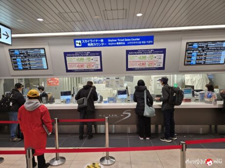 กรณีที่ไม่ได้ทำ Skyliner e-ticket Face Check in Go มาล่วงหน้า สามารถทำก่อนใช้บริการได้เลย ใช้เวลาไม่ถึง 5 นาที หรือถ้าคิวไม่ยาว จะเข้าไปซื้อที่ Skyliner & Keisei Information Center หรือ ที่เคาน์เตอร์ออกตั๋ว ก็ได้เช่นกัน