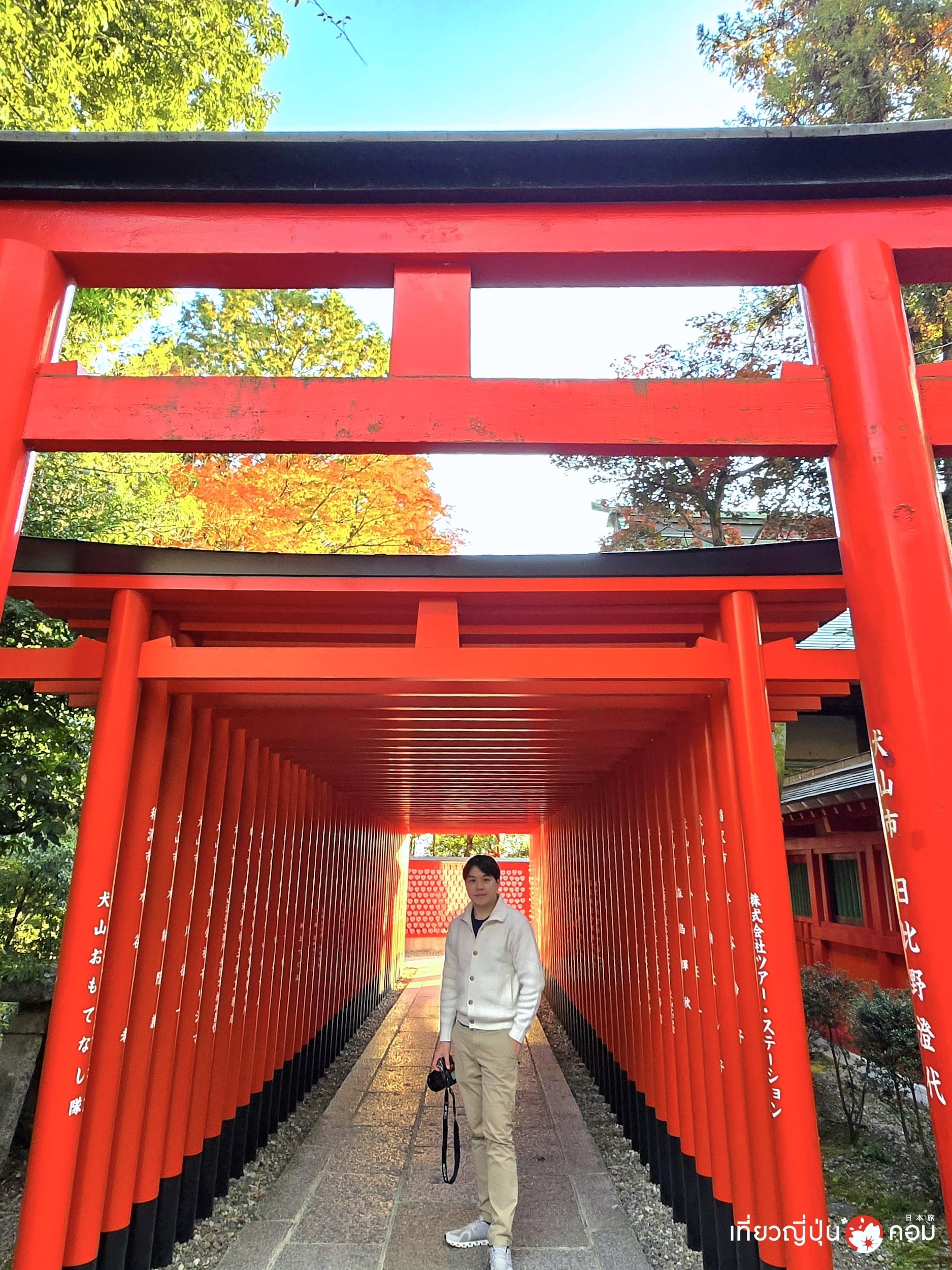 มีซุ้มประตูโทริอิสีแดงที่เรียงรายเป็นแนวยาวบนทางเดิน ลักษณะคล้ายกับ ศาลเจ้าฟุชิมิอินาริ ในเกียวโต แต่คนไม่พลุกพล่าน และเป็นที่รู้จักในฐานะศาลเจ้าความรัก มีแผ่นไม้ขอพรรูปหัวใจและเครื่องรางความรักให้เลือกซื้อ