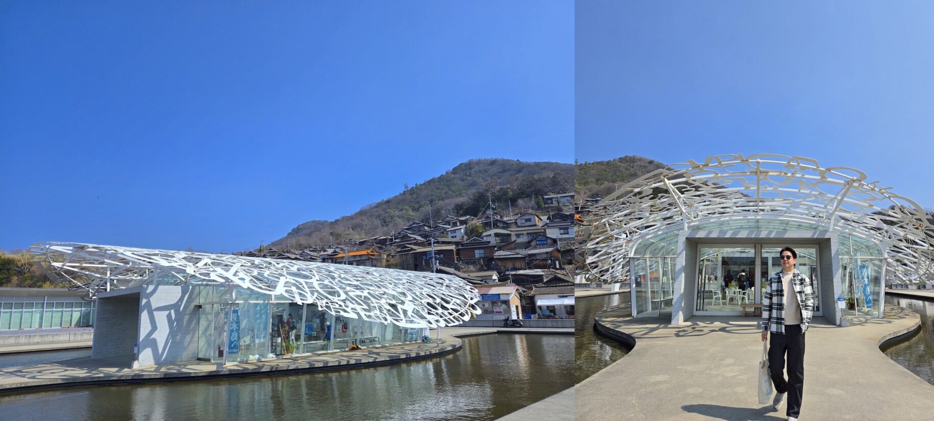 ผลงาน “Ogijima’s Soul” โครงสร้างโปร่งแสงบริเวณท่าเรือที่รอต้อนรับผู้เดินทางมาเยือนเกาะ บนหลังคาประดับไปด้วยตัวอักษรมากมาย ซึ่งเงาที่สะท้อนลงบนพื้นจะเปลี่ยนแปลงไปตามช่วงเวลาระหว่างวัน