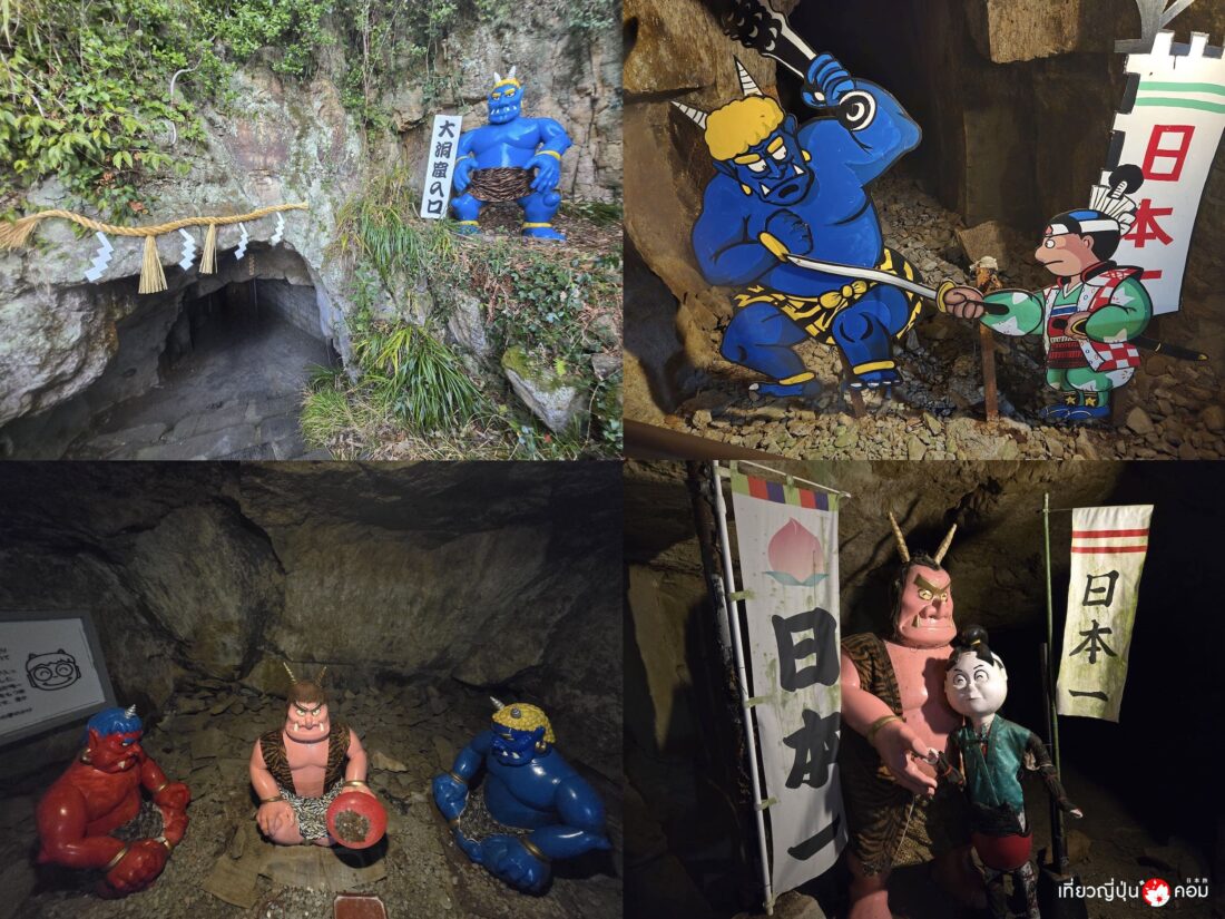 ถํ้าที่ซ่อนตัวของเจ้ายักษ์ในตํานานโมโมทาโร่ ที่นี่เป็นฉากในตํานานโมโมทาโร่ ตามตํานานเหล่ายักษ์กําลังเฉลิมฉลองกันอย่างสนุกในถํ้า จากปากถํ้ามีทางให้เดินจนไปถึงทางออกราว 400 เมตร บรรยากาศชื้น ๆ แสงไฟสลัว ๆ มีเหล่ายักษ์มากมายรอต้อนรับเราอยู่ เป็นบรรยากาศที่น่ากลัวพอสมควร