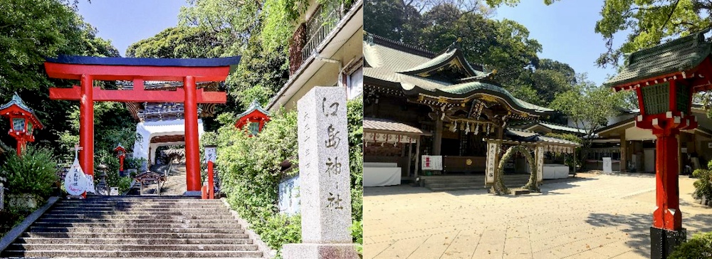 ศาลเจ้าแห่งนี้ตั้งอยู่บนเนินเขา ได้ทั้งชมวิวและขอพรในที่เดียวกันค่ะ หากใครเดินขึ้นไม่ไหว บนเกาะมี Escar (บันไดเลื่อน) ให้บริการ ช่วยให้ขึ้นไปได้อย่างสบาย ๆ โดยมีทั้งหมด 3 ระดับ ซึ่งจะมีค่าใช้จ่ายเพิ่มเติมเล็กน้อย โชคดีที่ครั้งนี้เรามี Enoshima-Kamakura Freepass ทำให้ได้ส่วนลดค่าบันไดเลื่อนด้วย
