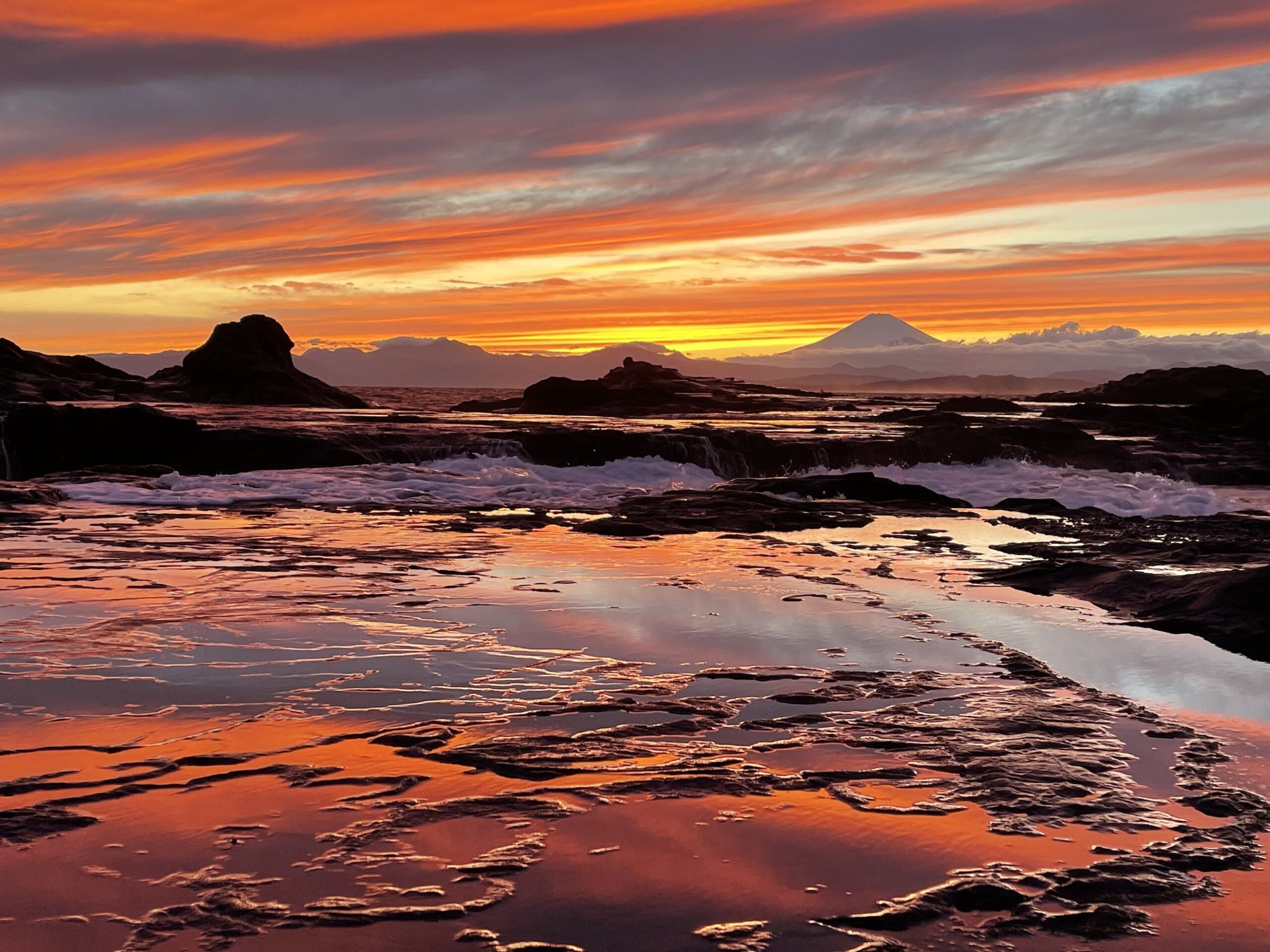 บริเวณหน้าถ้ำอิวายะบนเกาะเอโนะชิมะเป็นสถานที่ที่มีชื่อเสียงในการชมทะเลที่สวยงามและภูเขาฟูจิ โดยเฉพาะอย่างยิ่งในช่วงเย็นที่พระอาทิตย์ตกดิน ซึ่งเป็นช่วงเวลาที่แนะนำเป็นพิเศษ ขอเชิญชวนให้ลองไปเยี่ยมชมดูนะ