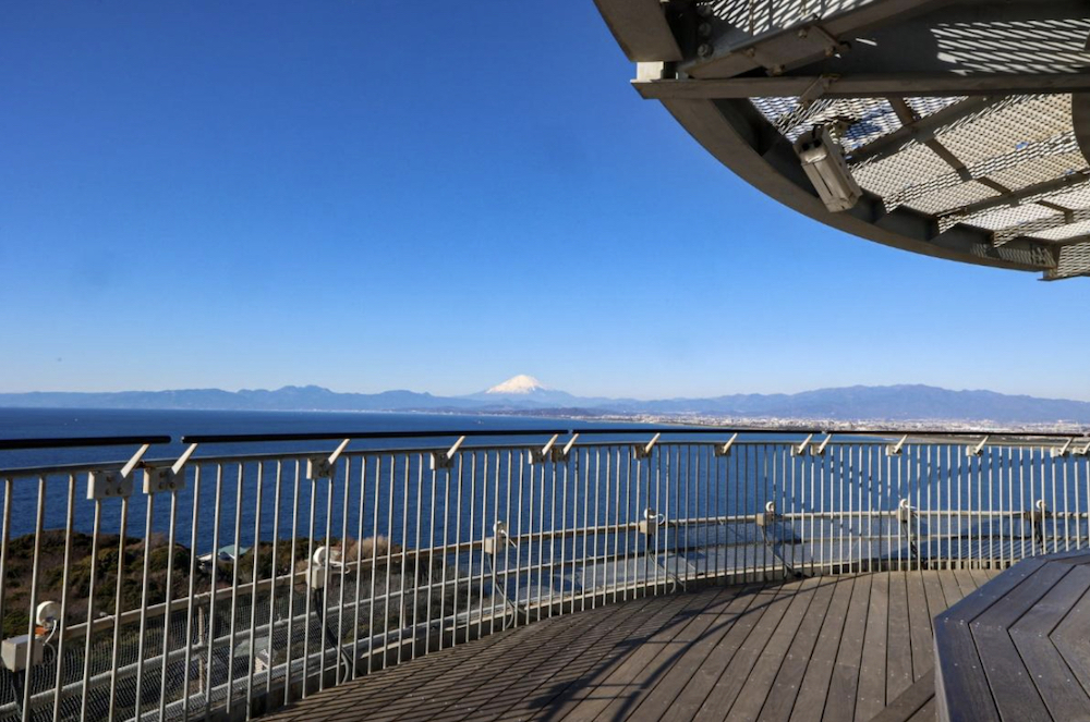 ถ้าไปในวันที่อากาศดี แนะนำให้ไปยังจุดชมวิวแล้วมองออกไปยังชายฝั่ง จะมองเห็นวิวของภูเขาไฟฟูจิ คู่กับทะเลที่สวยจนต้องหยิบกล้องขึ้นมาถ่ายรูปเลย