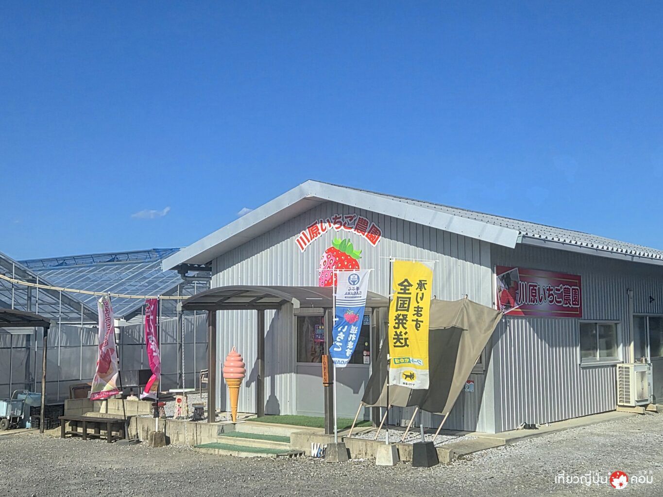 ฟาร์มสตรอเบอร์รี่คาวาฮาระ ตั้งอยู่ในเมืองโนเบโอกะ (Nobeoka) จ.มิยาซากิ มีสายพันธุ์ยอดนิยมอย่าง Saga Honoka ที่ขึ้นชื่อว่าหวานกำลังดีและอมเปรี้ยวใช้วิธีการเพาะปลูกแบบระบบสูง ทำให้ทั้งเด็ก ผู้ใหญ่ และผู้สูงอายุสามารถเก็บผลไม้ได้ง่ายโดยไม่ต้องก้มมาก ปีนี้ผลผลิตน้อย เนื่องจากได้รับผลกระทบจากสภาพอากาศที่ร้อนจัดในปีก่อนหน้า เลยไม่เปิดกิจกรรมให้เก็บกินไม่อั้น เราเลยมาลองกิจกรรมทำลองทำพาร์เฟ่ต์สตรอเบอร์รี่แทน