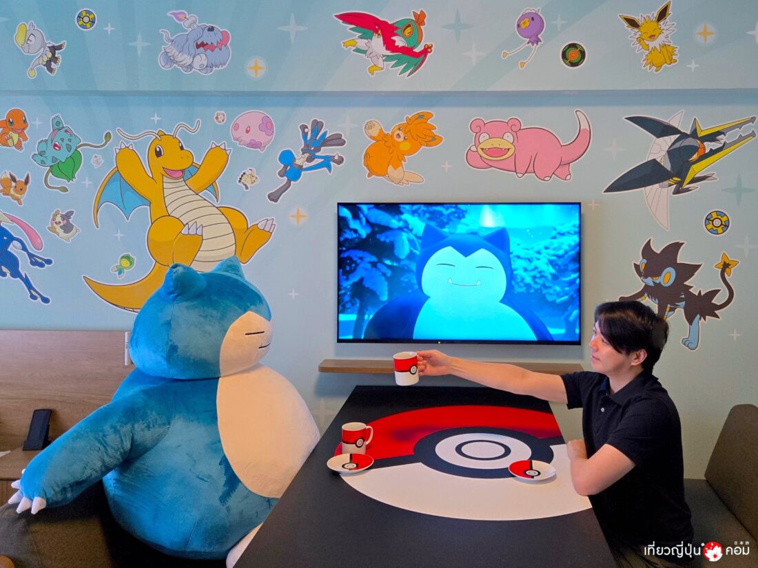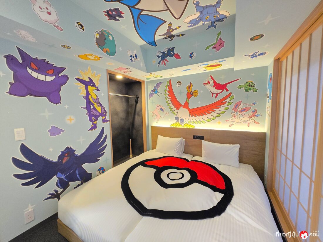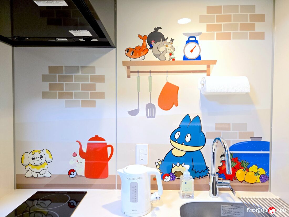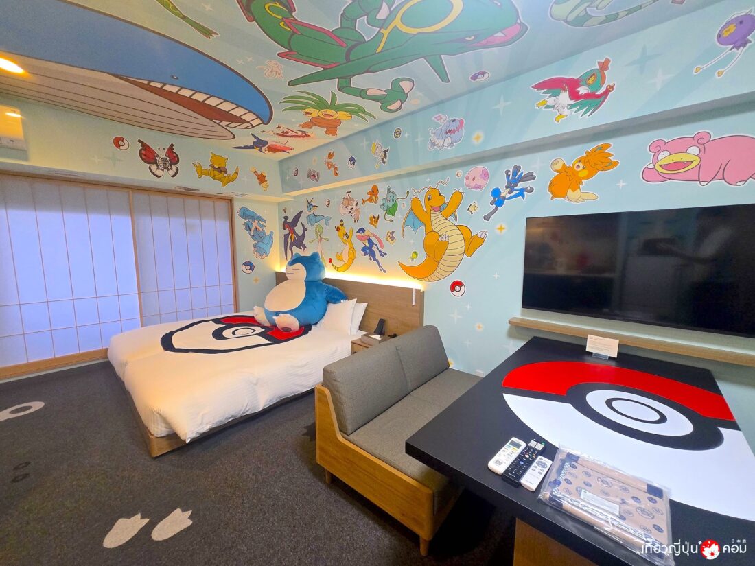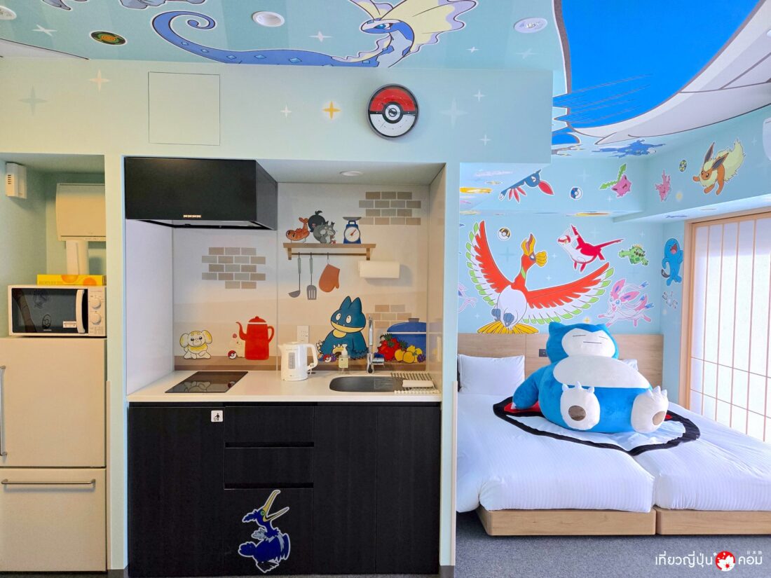 ห้องพักนี้จะพาผู้เข้าพักดื่มด่ำกับโลกโปเกมอนอย่างเต็มที่ด้วยคาแรคเตอร์โปเกมอนกว่า 100 ตัวที่โผล่อยู่ทุกมุม ไม่ว่าจะเป็น ผนังเพดาน ห้องครัว ห้องน้ำ และแม้แต่ของใช้บนโต๊ะอาหารที่ประดับด้วยลวดลายโปเกบอลอย่างมีสไตล์