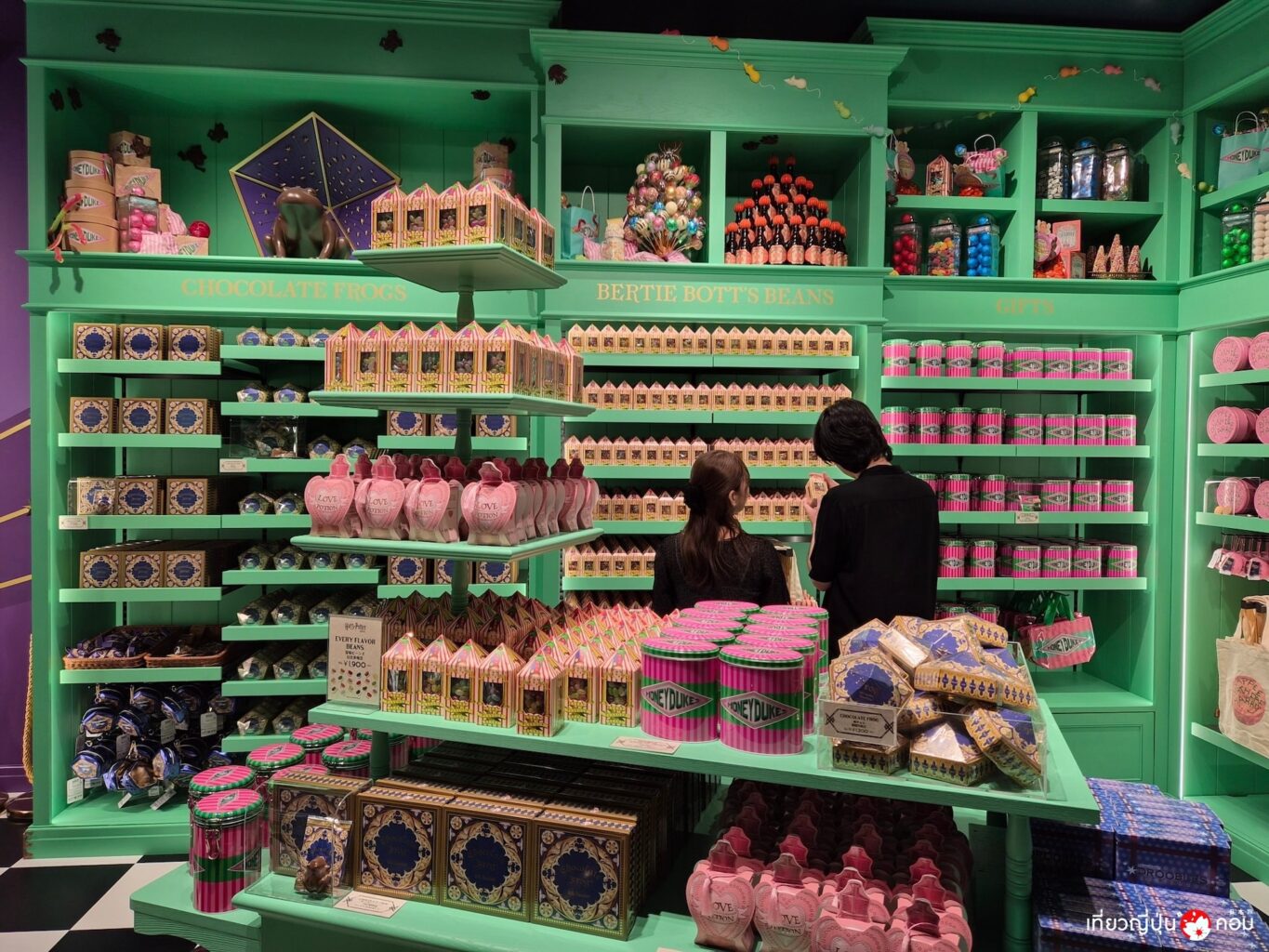 พร้อมโซนขายสินค้าแบรนด์ “MinaLima” ผู้ออกแบบกราฟิกในหนัง รวมถึงไม้กายสิทธิ์ ชุดคลุมฮอกวอตส์ เนคไท และขนมชื่อดังจากหนังอย่างกบช็อกโกแลตและเยลลี่รสหลอนใน “ฮันนี่ดุ๊กส์” เวอร์ชันญี่ปุ่น