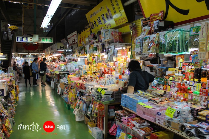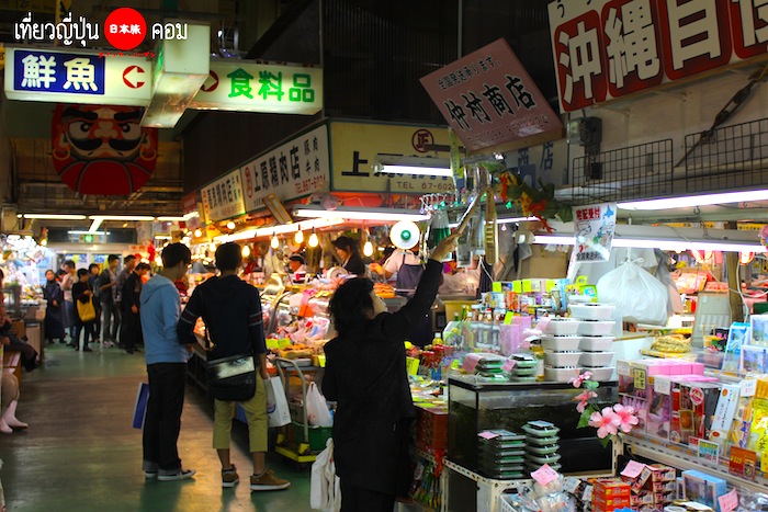 ภายในตลาดจะแบ่งเป็นสองชั้น ชั้นล่างจะเป็นพื้นที่ตลาดสดคล้ายกับตลาดสดบ้านเรา ขายของสดทั่วไปอาทิเช่น อาหารทะเลซึ่งสดมากๆ และอาหารประจำถิ่นของโอกินาว่าคือ สาหร่ายพวงองุ่น ซึ่งโปรดมากกกกกกแต่ที่เจ๋งไปกว่านั้นคือเราสามารถซื้ออาหารสดจากร้านอาหารด้านล่างแล้วเอาขึ้นไปให้ร้านด้านบนปรุงอาหารให้เราได้ตามชอบใจไม่ว่าจะ ย่างเนย ย่างเกลือ ทอด ปิ้ง ย่าง…. เมื่อเราเดินไปชั้นที่สองก็จะพบกับร้านอาหารหลากหลายร้านที่ขายอาหารพื้นเมือง