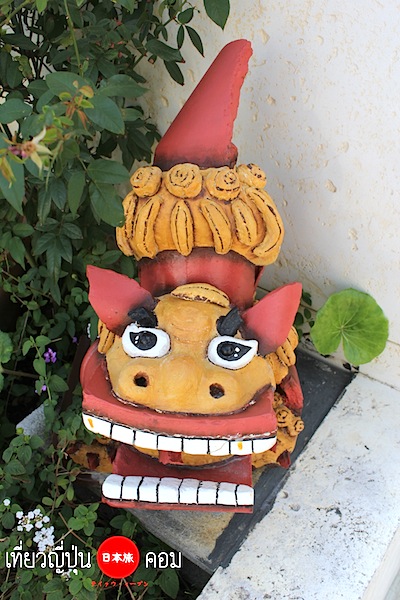 ลากันไปด้วยภาพของตัวสัตว์สัญลักษณ์ของจังหวัดโอกินาว่าซึ่งคนพื้นเมืองเรียกว่า ตัวซิซะ…..