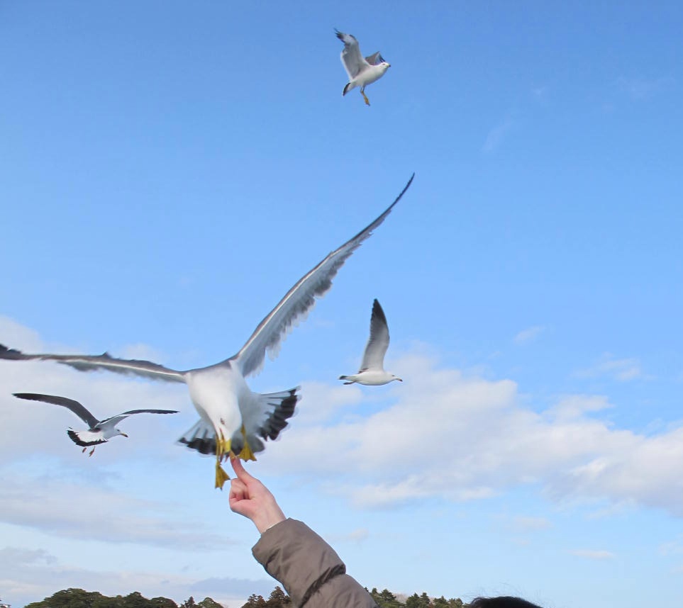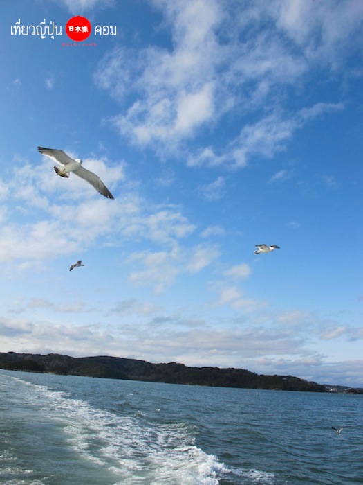 Matsushima เป็นเมืองท่องเที่ยวริมอ่าวมัตสึชิมะ มีเกาะน้อยใหญ่มากมาย(ด้วยเกาะน้อยใหญ่พวกนี้ช่วยลดแรงกระแทกของคลื่นยักษ์ ทำให้มัตสึชิมะได้รับผลกระทบจาก Tsunami ปี 2011 ไม่มากเท่ากับเมืองริมทะเลอื่นๆในแถบนี้ แต่ก็ได้รับความเสียหายพอสมควรค่ะ) และเป็นแหล่งเลี้ยงหอยนางรมด้วยค่ะ ที่นี่มีนกนางนวล (ภ. ญี่ปุ่นเรียกว่า “คาโมเมะ” kamome) ให้เราได้นั่งเรือชมอ่าวและเลี้ยงอาหารด้วยฮานามิกันอย่างเพลิดเพลิน บรรยากาศดีสุดๆ ไปเลยค่ะ