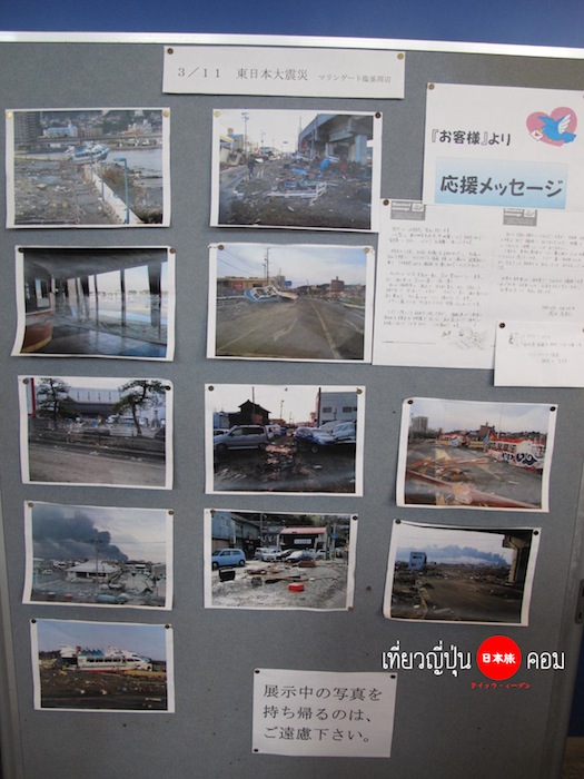 พอมาถึงฝั่ง Shiogama ที่ท่าเรือนี้จะเป็นอาคารเล็กๆ มีตลาดขายของทะเลด้านใน มีร้านขายของฝากเล็กน้อย (ตึกนี้ได้รับความเสียหายจากสึนามิพอสมควร จะมีรูปแปะตามบอร์ดให้ได้ดูกันค่ะ) จากนั้นก็เดินตรงไปทางห้าง AEON เพื่อที่จะไปขึ้นรถไฟกลับ Sendai กันที่สถานี Honshiogama ใช้เวลา 20 นาทีก็ถึงแล้วค่า
