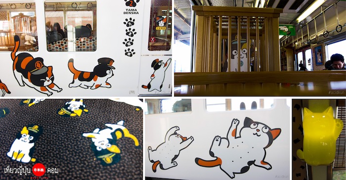 รถไฟเจ้าทามะ ถูกตกแต่งด้วยภาพการ์ตูนทามะ เบาะลายพิมพ์เหมียว แม้กระทั่งกรงเจ้าเหมียว ตอนผมไปนี่ถ่ายรูปกันเพลินเลยล่ะครับ