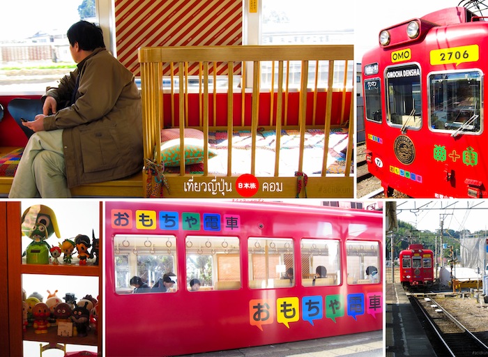 ส่วนอีกขบวนนึงเป็นรถไฟของเล่นสำหรับคุณหนูๆครับ ชื่อว่า Omo-den (Omo ย่อมาจาก Omocha แปลว่าของเล่น Den ย่อมาจาก Densha ที่แปลว่ารถไฟครับ)