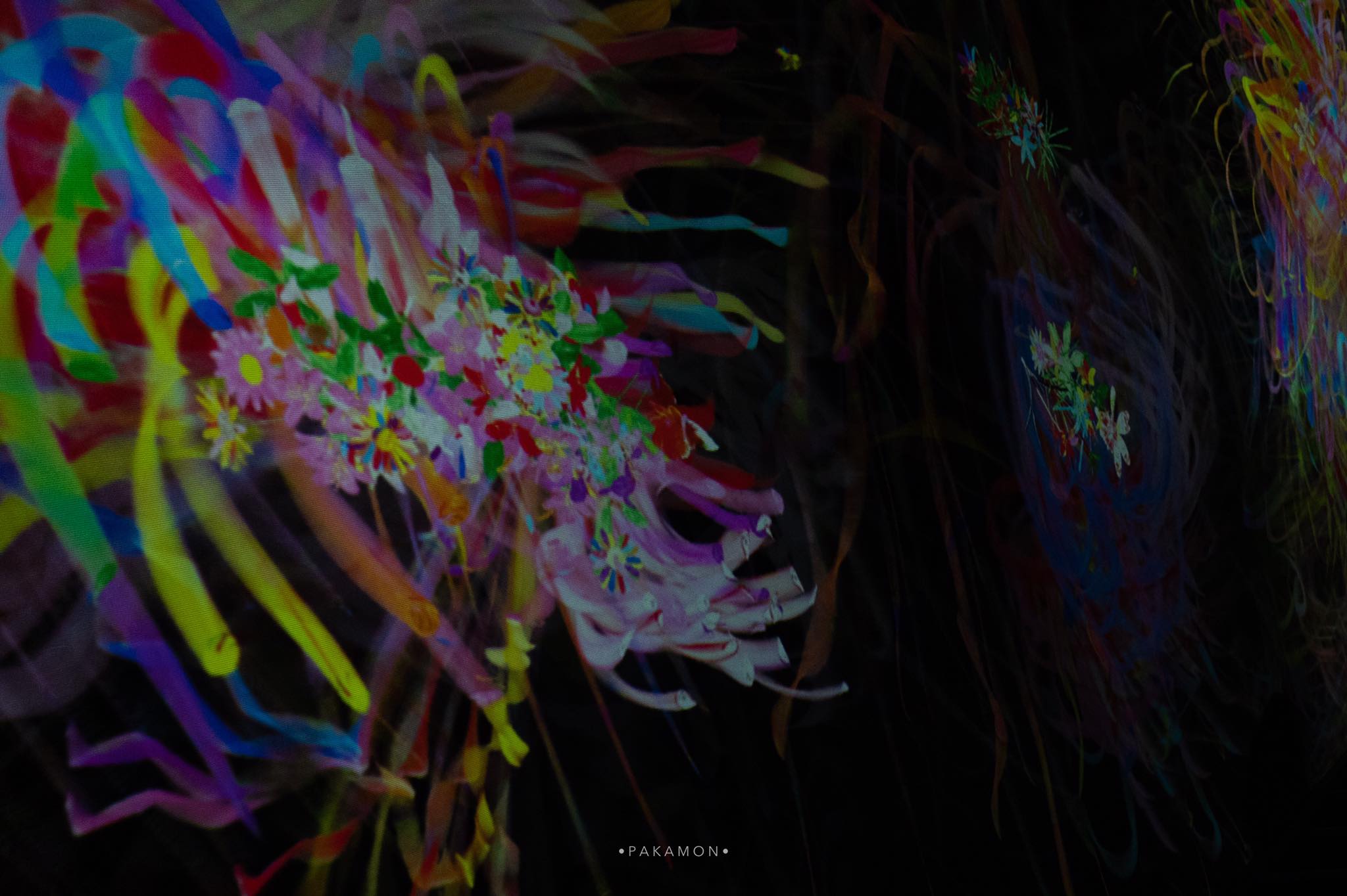 “Forest of Flowers and People: Lost, Immersed and Reborn” มุมนี้หากเราไปยืนนิ่งๆ ดอกไม้จะค่อยๆ เบ่งบานรอบตัวเรา แต่หากเราไปสัมผัสที่ดอกไม้