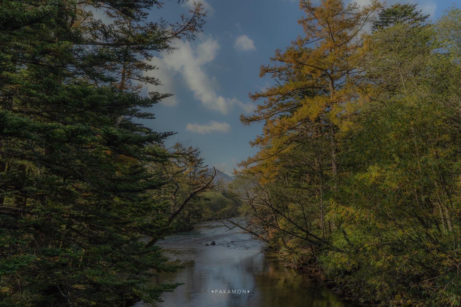 เดินข้าม Tashiro Bridge มาแล้วเลี้ยวซ้าย เดินริมแม่น้ำ Azusa มาเรื่อยๆ ก็จะเจอวิวสวยๆ มากมาย วิวนี้พระอาทิตย์เริ่มจะโผล่พ้นภูเขา
